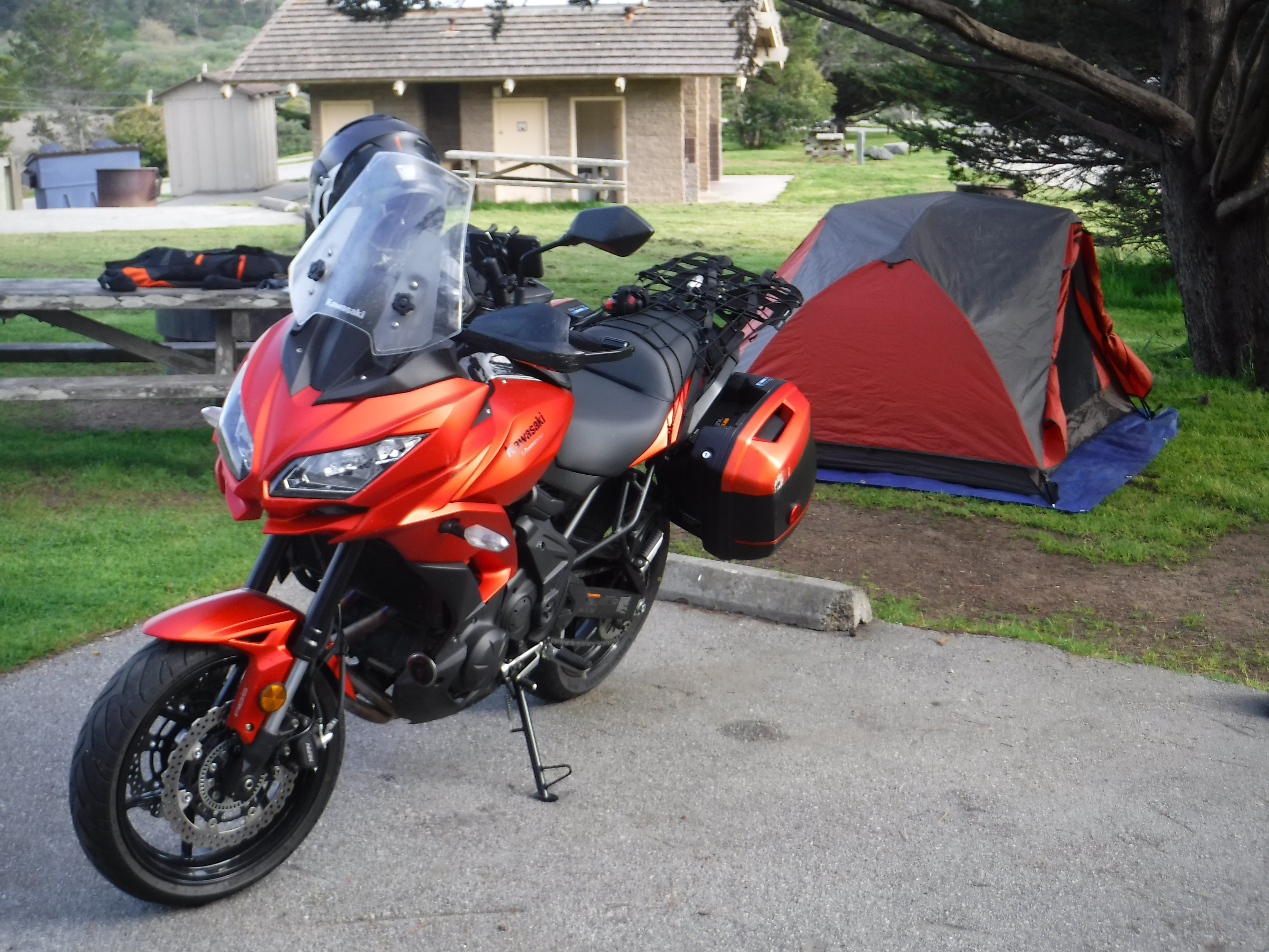 The road was open and though we may have wanted to lean a bit more into the curves, sightseeing tourists kept us vertical as we slogged down the highway. Though it was cloudy and cool and the traffic slow, we dressed for the conditions and, making the best of the slog, enjoyed the vistas down to Cambria which were stunning.