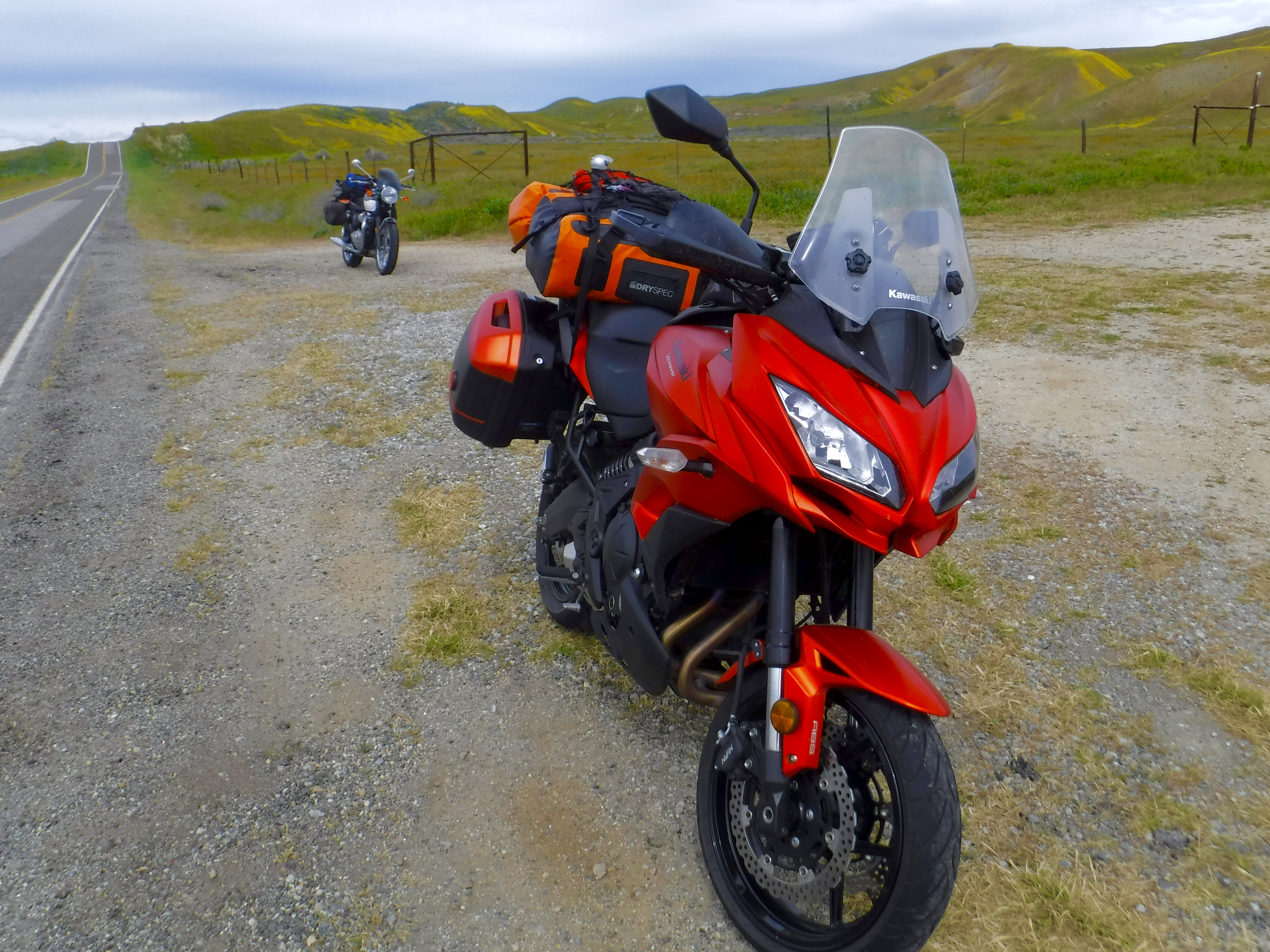 All of the rain gave me the opportunity to consider this spring’s moto to view the best of the super bloom. Joining me on this two wheel road trip was fellow rider Pete, on his Bonneville T120, and I on the Kawasaki Versys. This was to be our third loop around California to enjoy what the state has to offer in terms of the best two seasonal transitions: fall to winter and winter to spring…