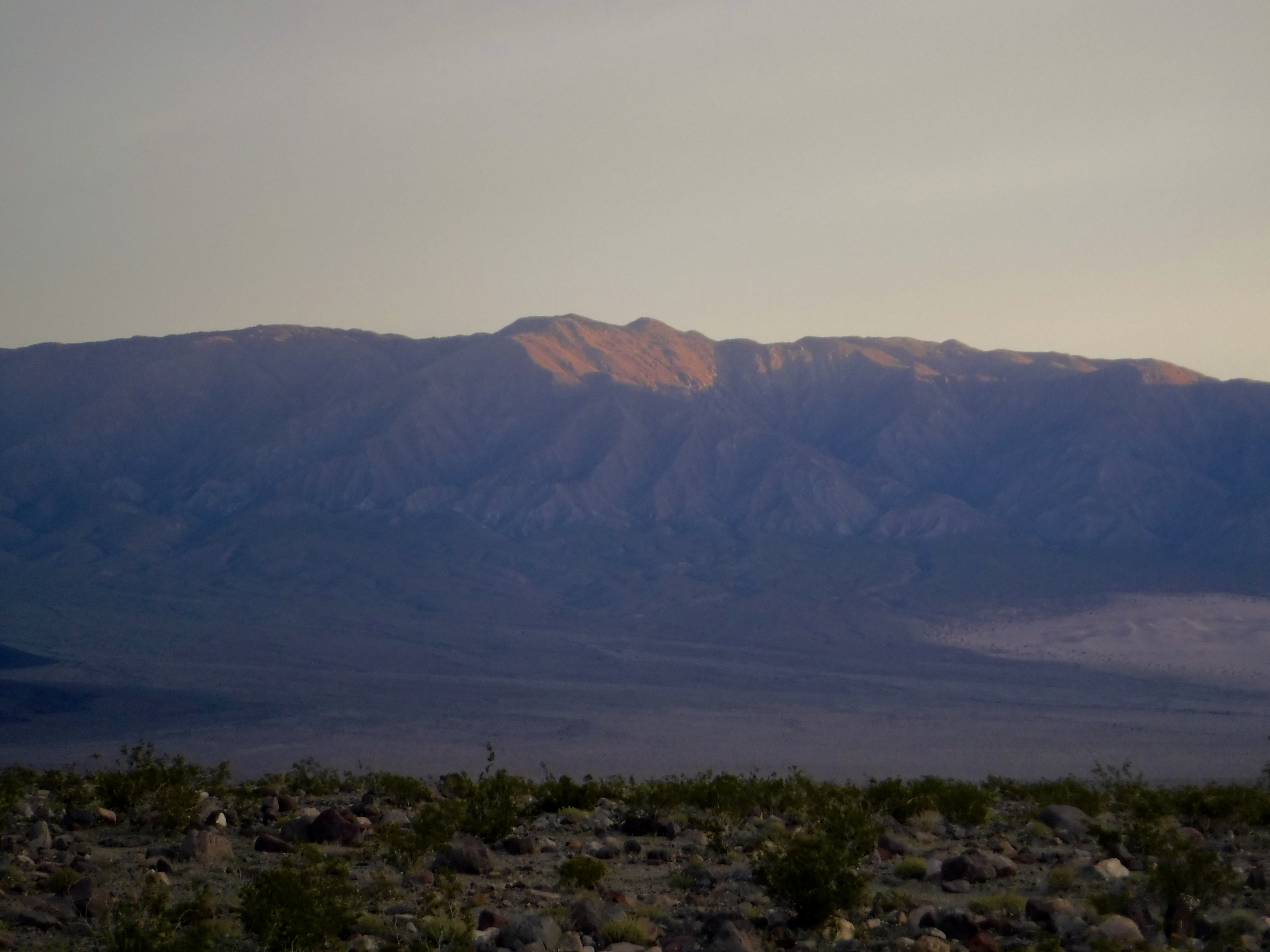 As the sun was setting the light reflected off of the harsh desert terrain softened as the warmer wavelengths of the spectrum illuminated the landscape. Snow topped Telescope Peak glowed in the setting sun.