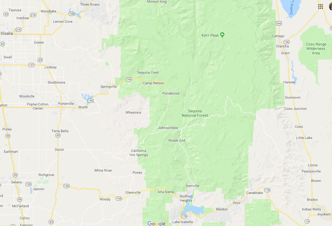 Instead we traveled over Alta Sierra on SR 155 through Glenville and Old Stage Rd. into Porterville. North on SR 65 through Strathmore, Lindsay, and Exeter we then turned east on SR 198 to Three Rivers for the night. The compensating feature of missing out on the Great Western Divide Highway was that the air was deliciously scented by the blossoming citrus in the region.