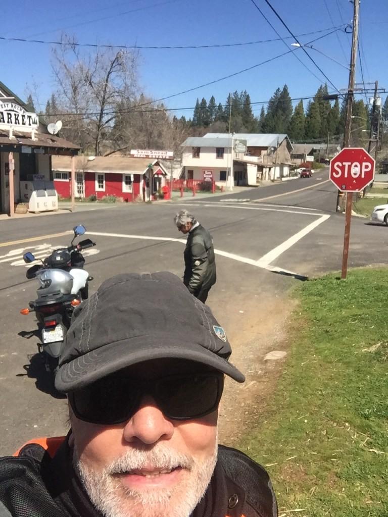 I know. The May rides will be better. More moto and scenery, less squint and repetitive video. Left to right, Marsh’s Flat (again), dual selfies at Marsh’s Flat and Pinecrest Lake.