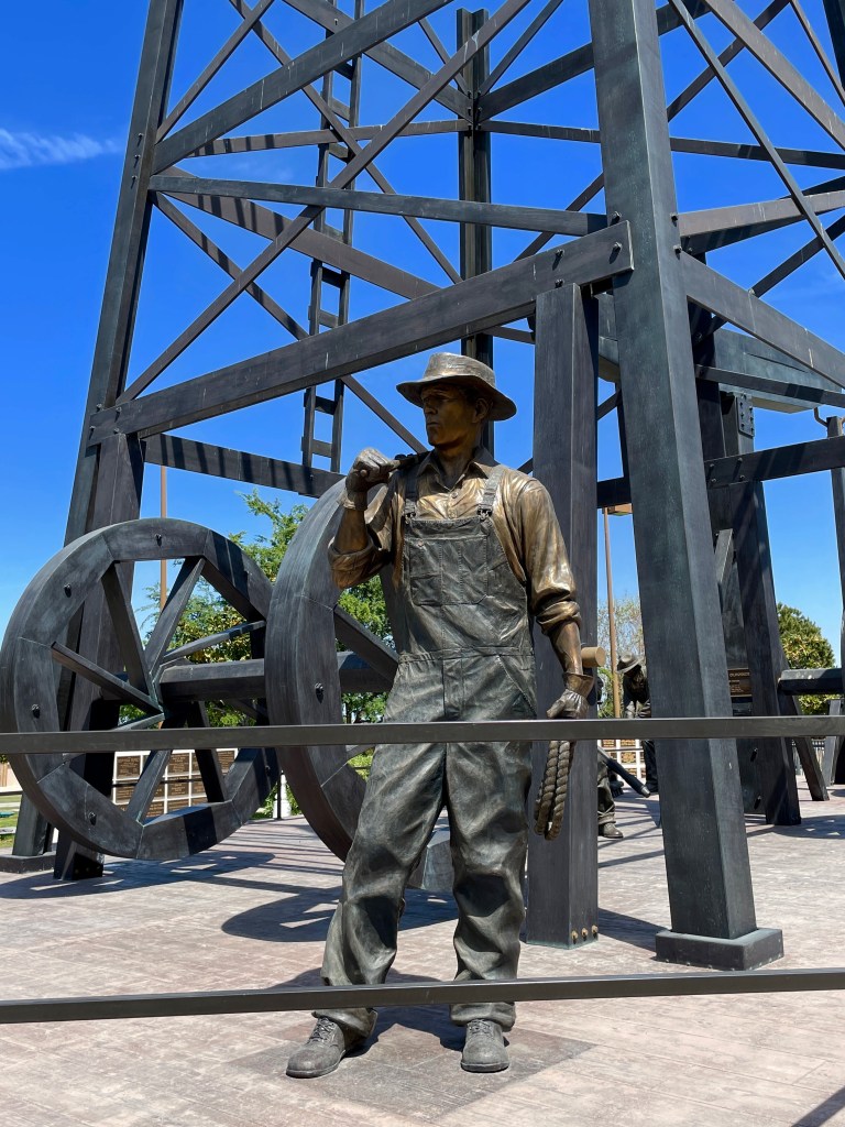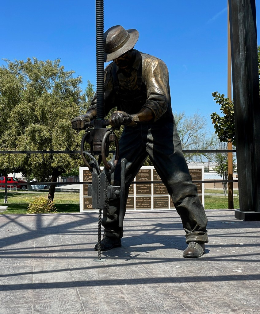 I thought Pete’s partner Cheryl would appreciate that we would acknowledge a bronze sculptural art installation on this tour. I imagine it’s a much cleaner representation, and with the Chamber’s somewhat more romantic description, of the roughnecks that Gerald Haslam chronicled in his works about the men who worked the Midway-Summit oilfields of yesteryear. https://en.wikipedia.org/wiki/Gerald_Haslam