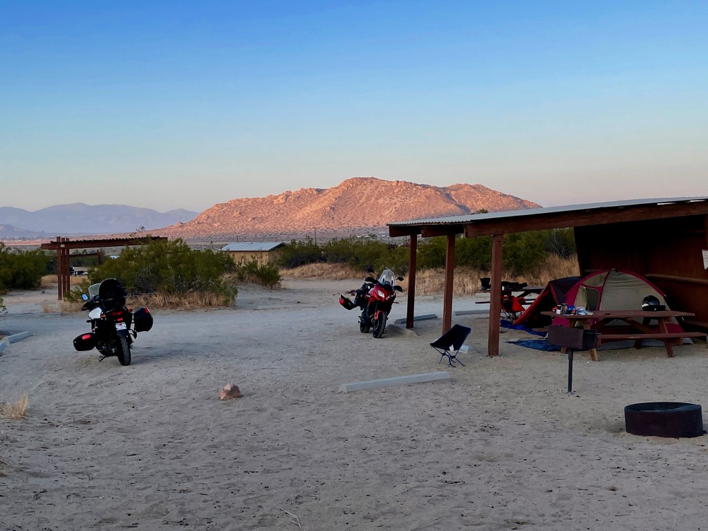 Entering the outskirts of Palmdale we encountered the most urban and desert (urbert or desban?) environs of the trip navigating over crowded busy streets teaming with post Covid shutdown revival. After a fine meal at Los Originales restaurant and a quick stop for post ride beverages observing the three R’s of relaxation, reflection, and rehydration, we sought our second night’s accommodations after 249± miles of mostly Butler PMT/Lost Highways G1’s and G2’s mixed in with a few (and now for a third Jones category road) PDRoC‘s (Paved Desert Roads of California-description follows), eventually landing at the Saddleback Buttes State Park Campground.