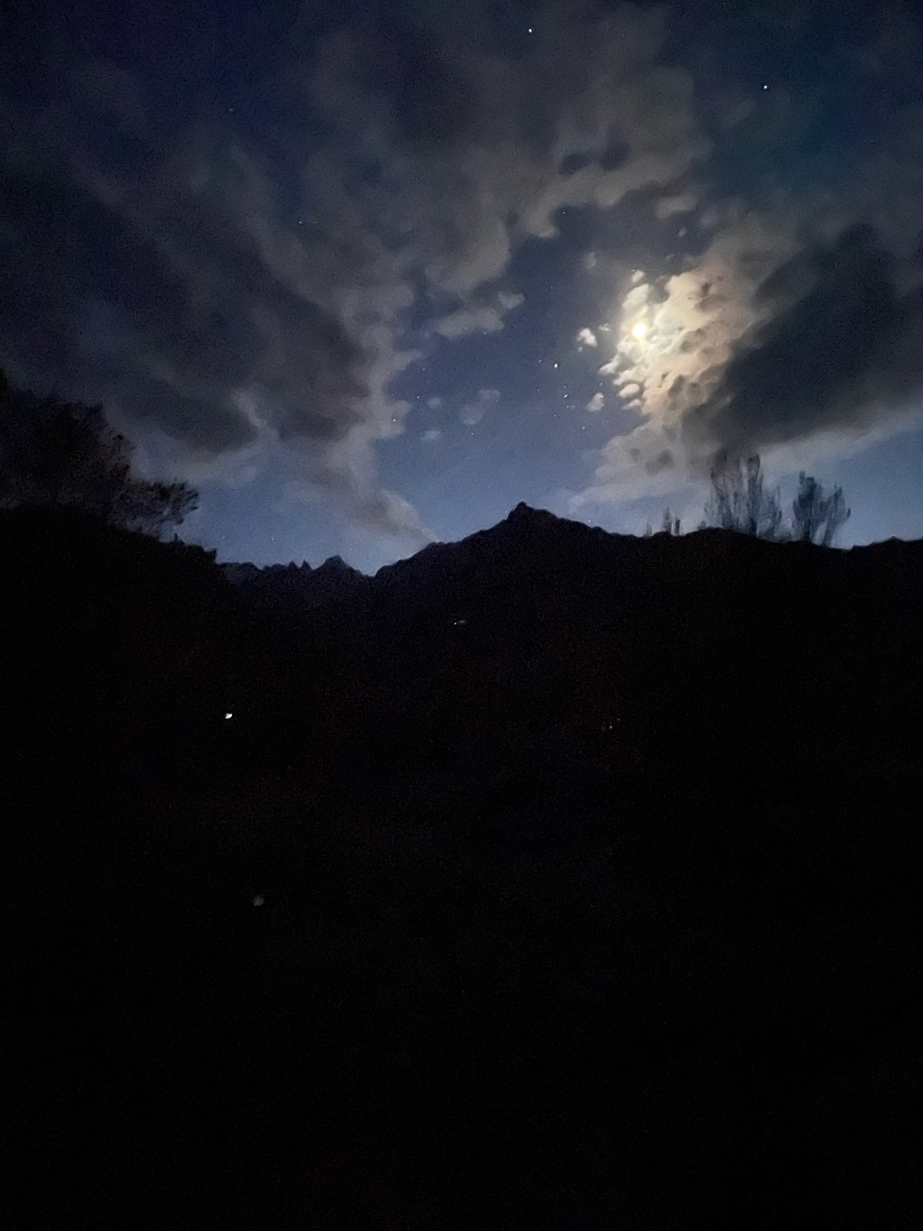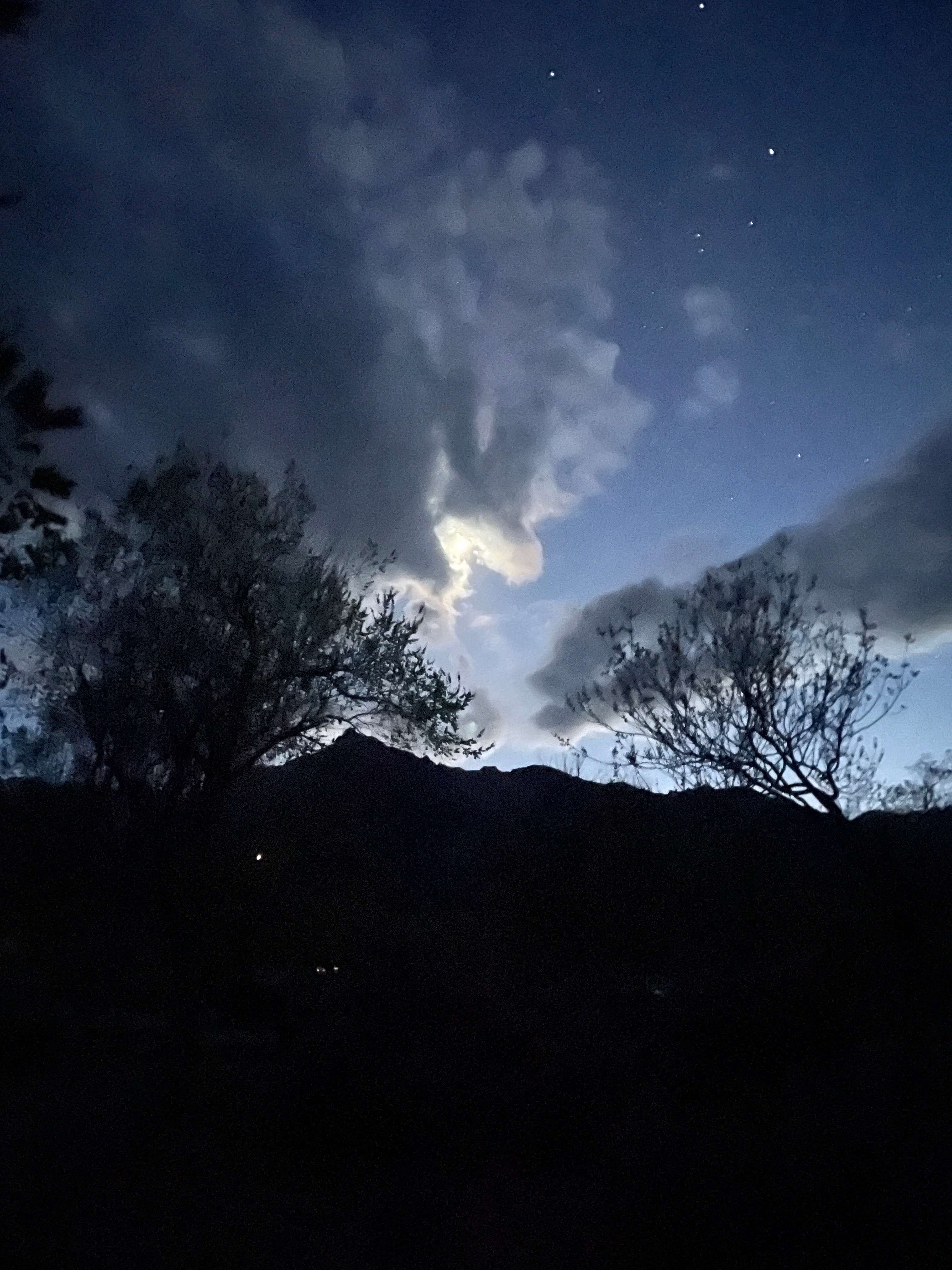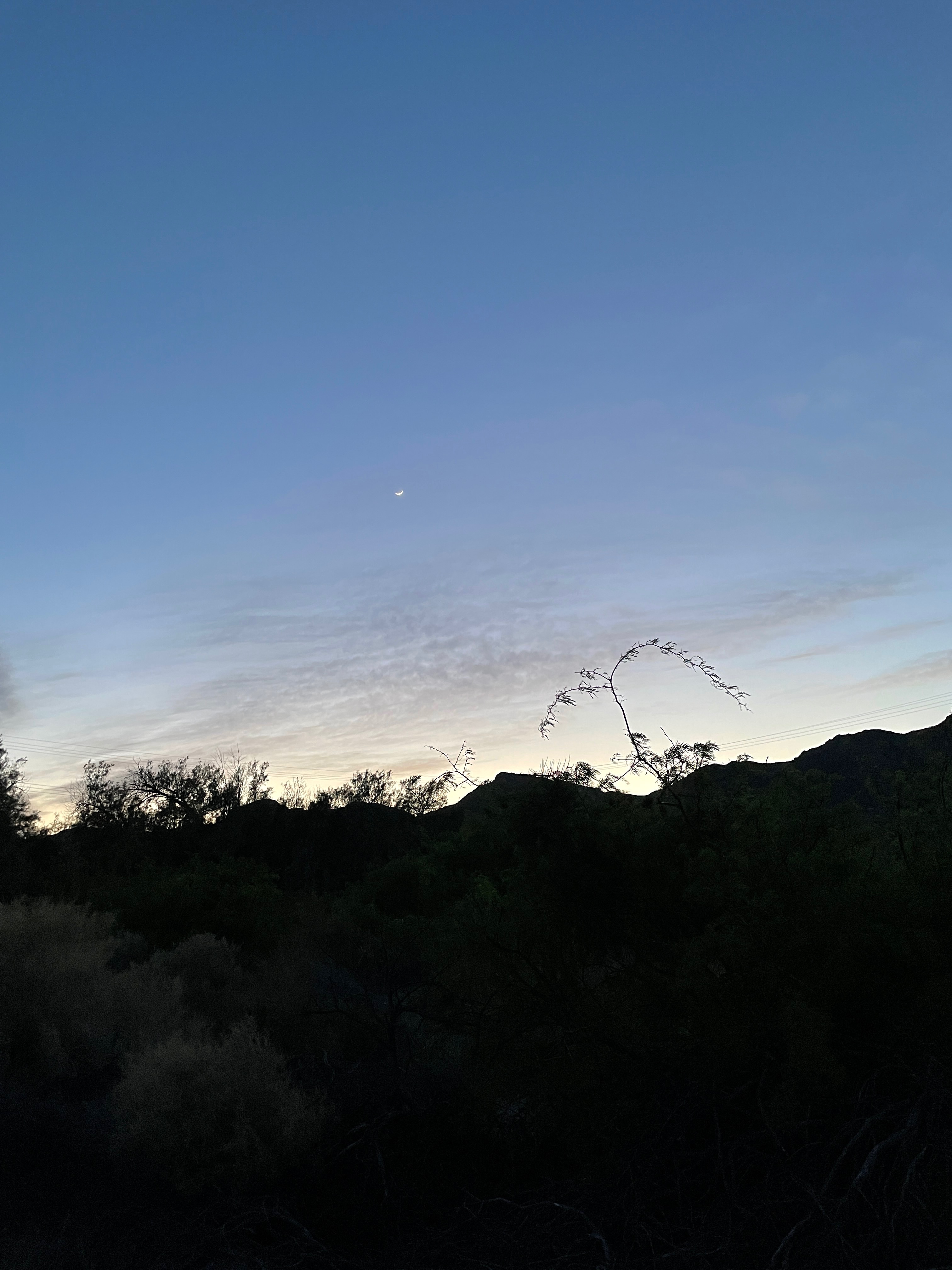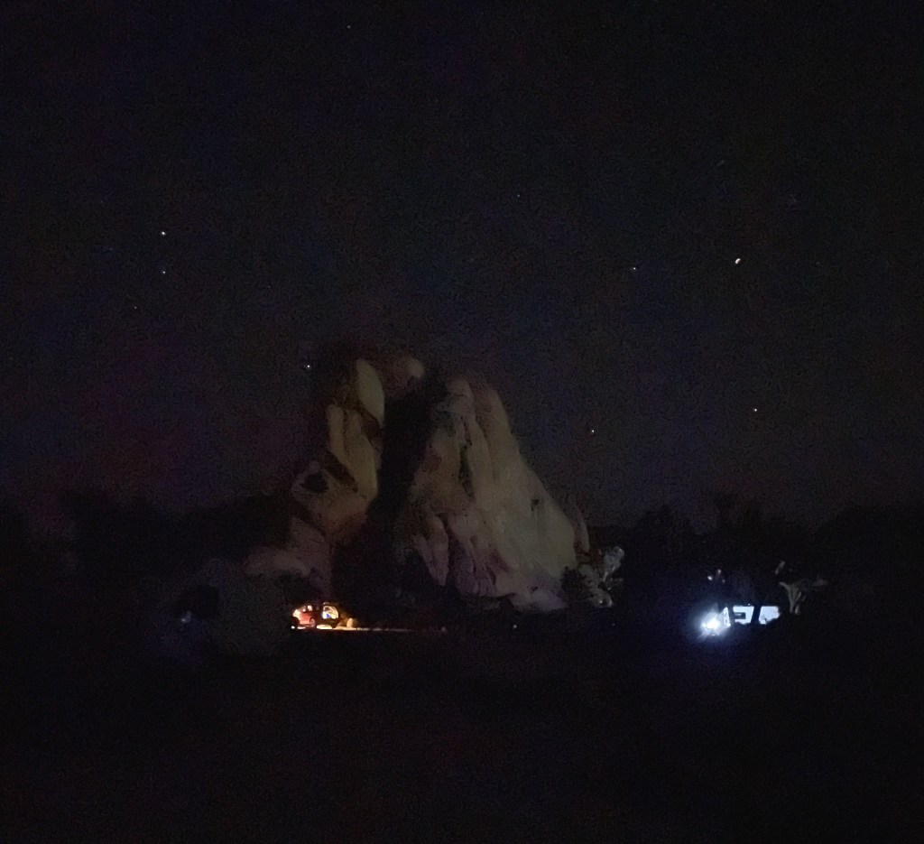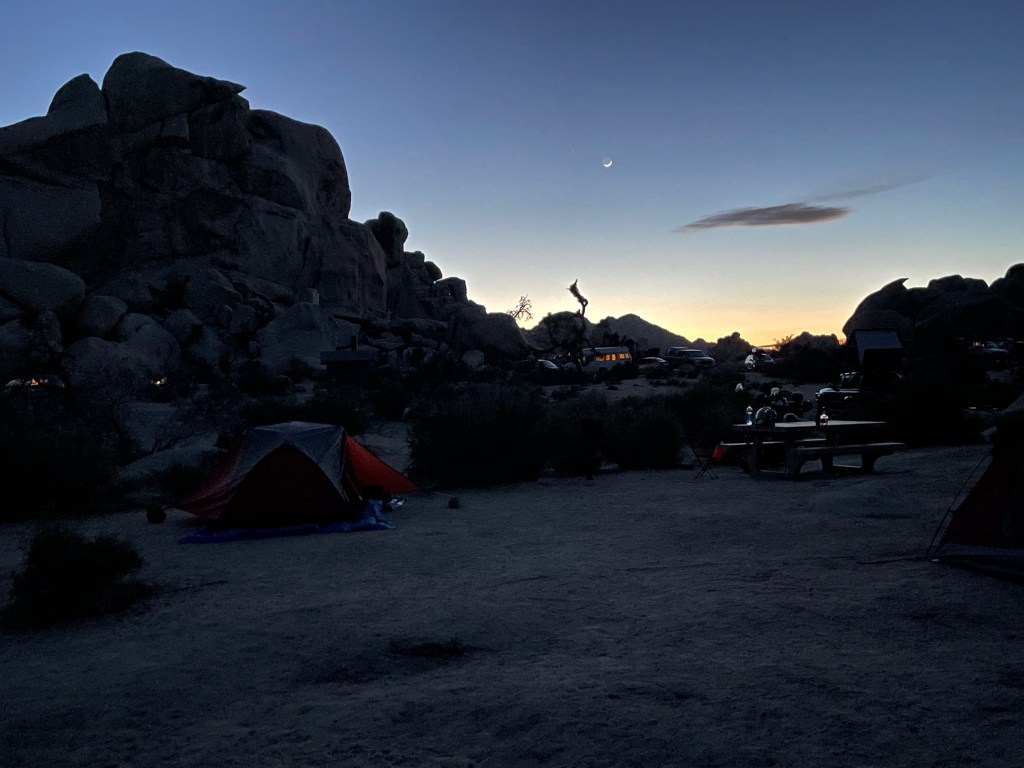 After dinner and beverage procurement we returned to the campsite to once again pay tribute to the 3-R’s of relaxation, reflection, and rehydration. The setting sun and the rising waxing crescent moon set the mood while the Sleepytime brewed next door and the last of our remaining electrolytes were consumed. This is when the the first of dozens of UFO’s appeared in the night sky as coyotes serenaded…