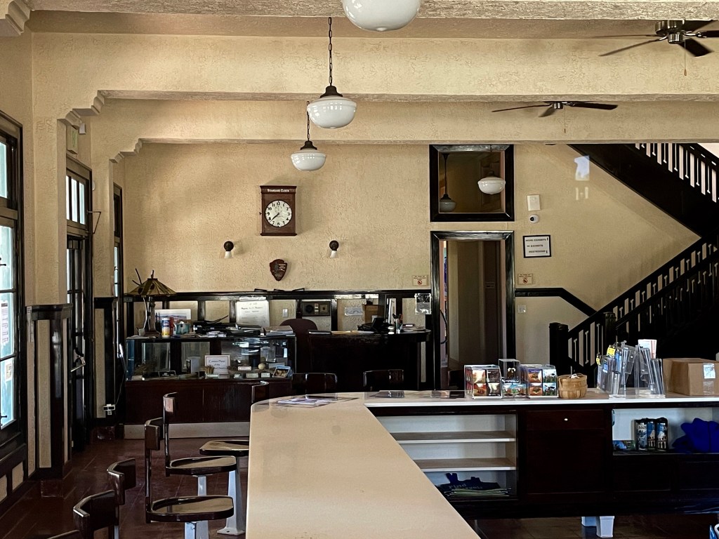Kelso was a base of operations for the San Pedro, Los Angeles and Salt Lake Railroad, connecting track of Union Pacific Railroad, to which the SPLA&SL had negotiated trackage rights, with the Atchison, Topeka and Santa Fe Railway east-west line to the south. Here, trains were watered and “helper” locomotives were attached to assist the regular trains in climbing the steep Cima Hill. The distance between Las Vegas and the connection with the Santa Fe line at Daggett was too far for trains without a meal car, so Kelso was a convenient spot for a restaurant stop.