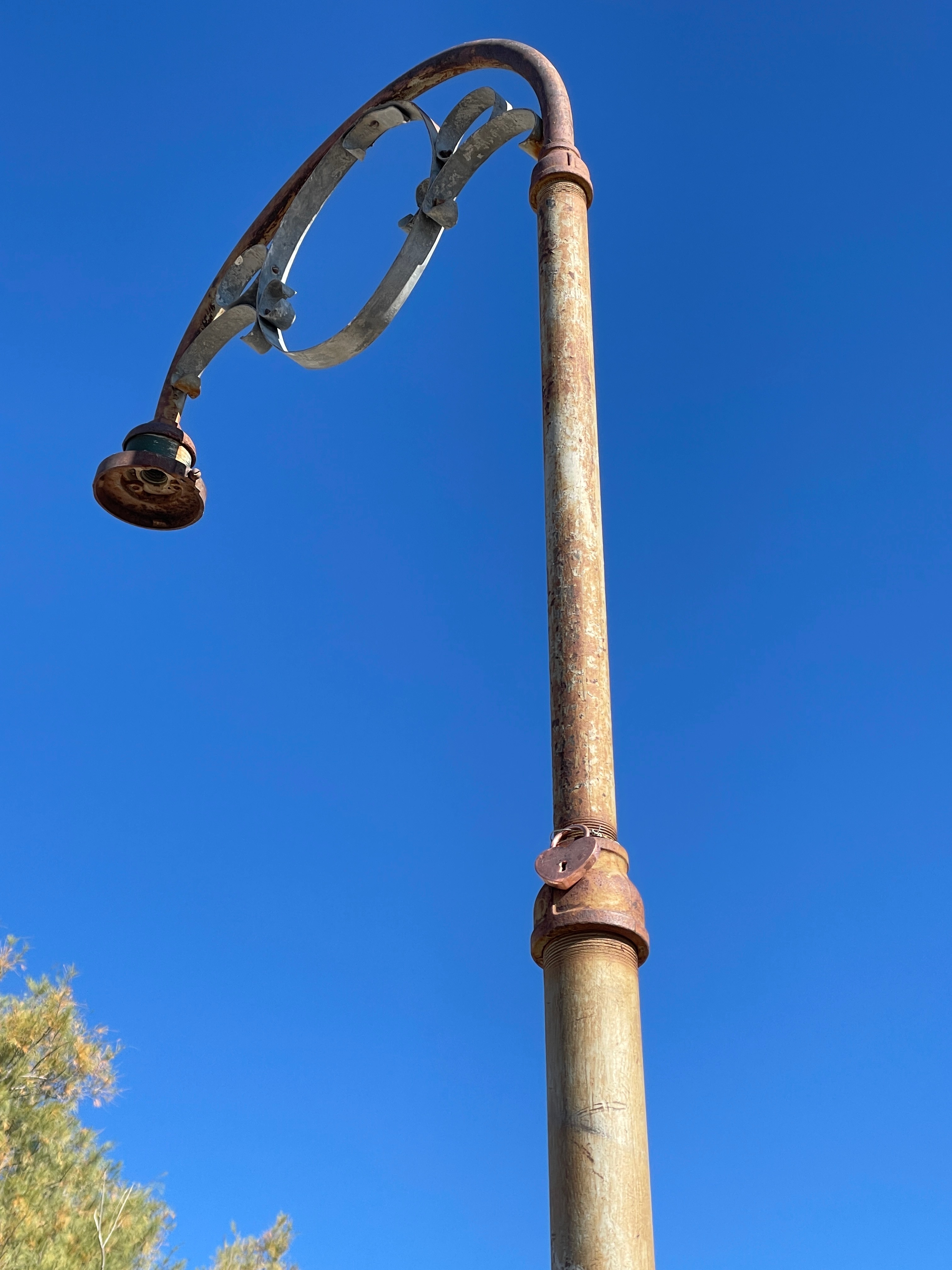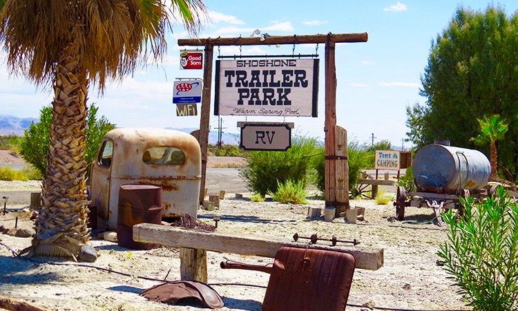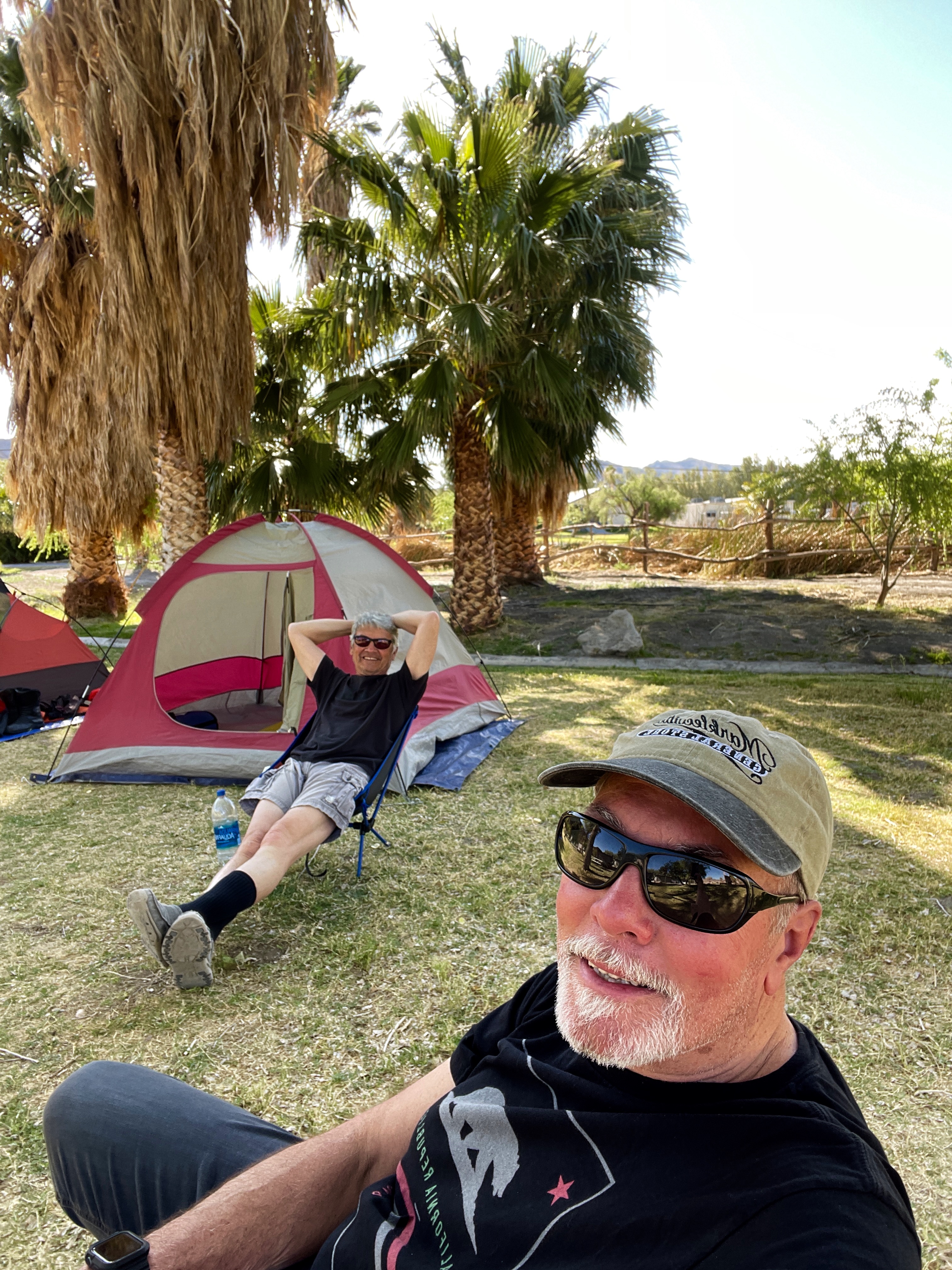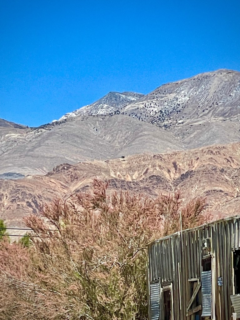 We arranged for a campsite at the Shoshone RV Park having logged around 200 miles. From the outside the campground didn’t look like much but once inside it was agreed to be our favorite campground northeast of Joshua Tree. At least until we got to Lone Pine which is northwest of Joshua Tree. There was electricity to charge our hungry devices and showers along with a flowing ditch fed by water from the Amargosa River and we met new friends!