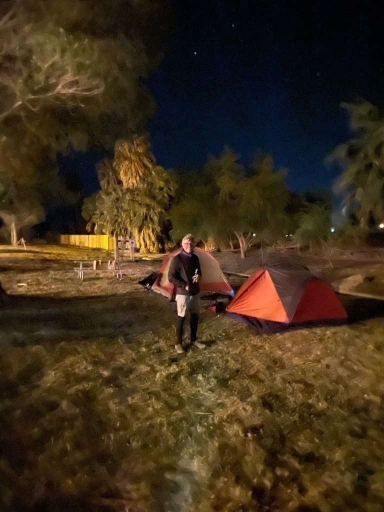 The cabana under which we pitched camp provided a windbreak of sorts as throughout the night gusts would rattle our tents. Having just listened to the first six episodes of the Lost Hills podcast the week before that explored a series of strange shootings at a state park in Malibu, one of which ended with the murder of a 35-year-old father in front of his two kids, prepared me for an uneasy night in an isolated desert campground. The podcast by Dana Goodyear is centered around the murder of Tristan Beaudette, a father who was killed, shot while asleep in his tent, June 22nd, 2018 while camping with his two young daughters in Malibu Creek State Park. Although there were no witnesses or suspects, after Beaudette’s death, other people started coming forward with stories of being shot at near the same campground.