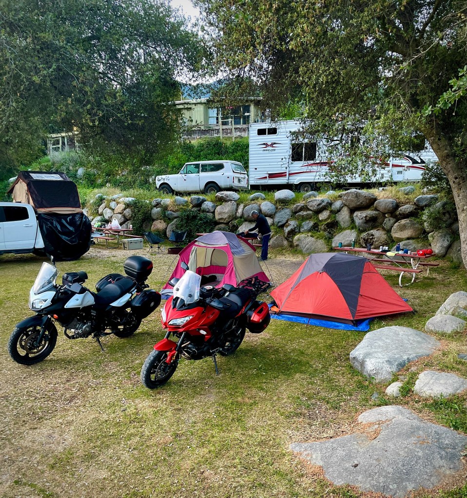 Ditching the gear so I could now actually hear, Andreas’s pal Pablo graciously offered his adjacent campsite for us to pitch our tents. It seems the common denominator of motorcycles compelled our comrades’ generosity. Days earlier the gentlemen had located two campsites adjacent to one another using Andreas’s strategy to pester campers who appeared to be packing up early in the morning to claim their campsites in the struggle of age old first-come-first-served campsite homesteading. They had decided they needed the two spaces for their separate vehicles, but were only using the one space for socializing.
