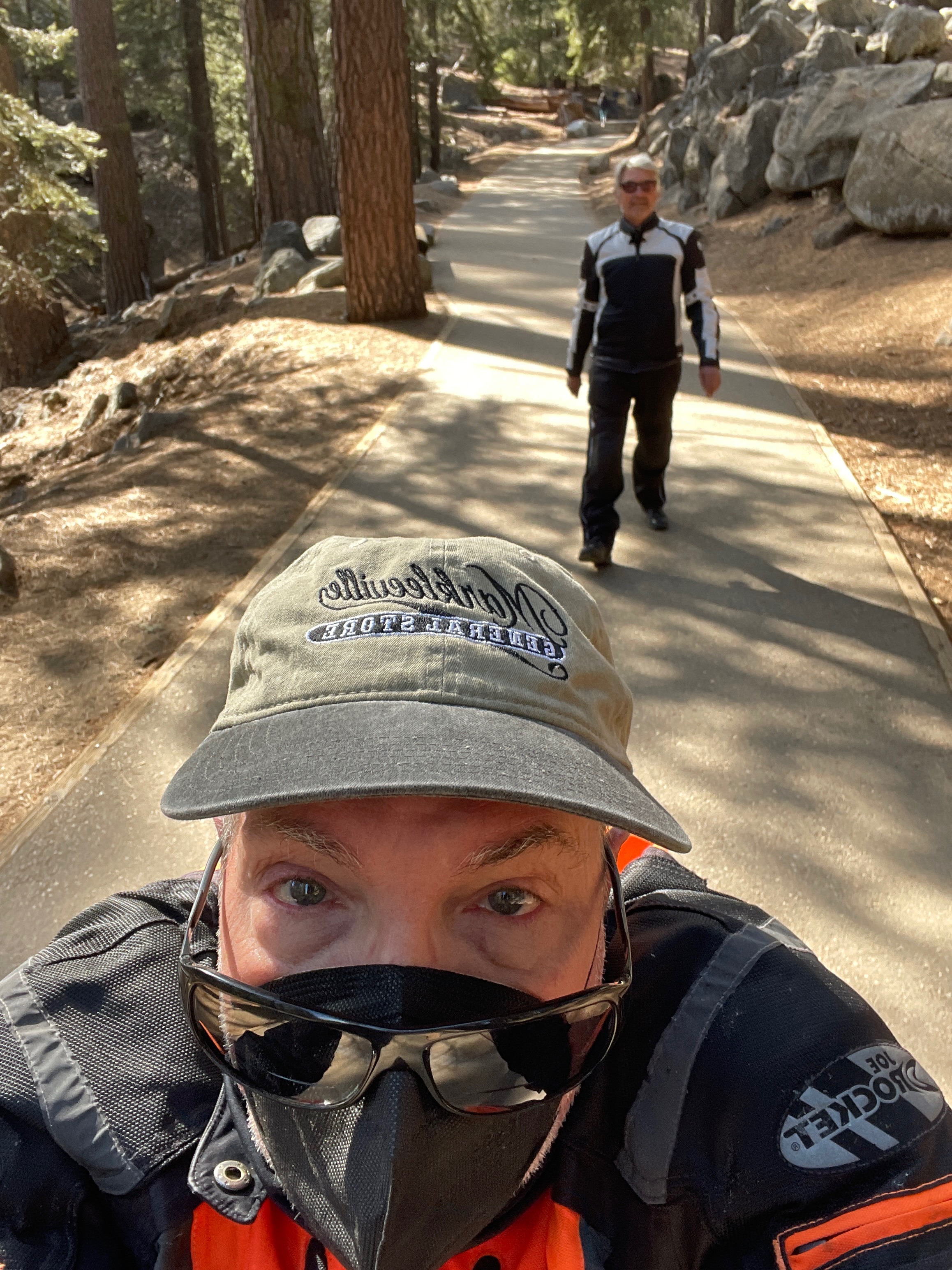 As a fitting last day of riding on our sea to sand to snow trip, we needed another complement of Butler G1 and G2roads. The Generals Highwaythat connects State Route 180 and State Route 198 through Sequoia National Park, the Giant Sequoia National Monument, and Kings Canyon National Park, was just the road. Clear of snow, the road was scheduled to be opened on April 23, but when we checked with the Hideaways camp manager, she said it had just opened earlier in the week.