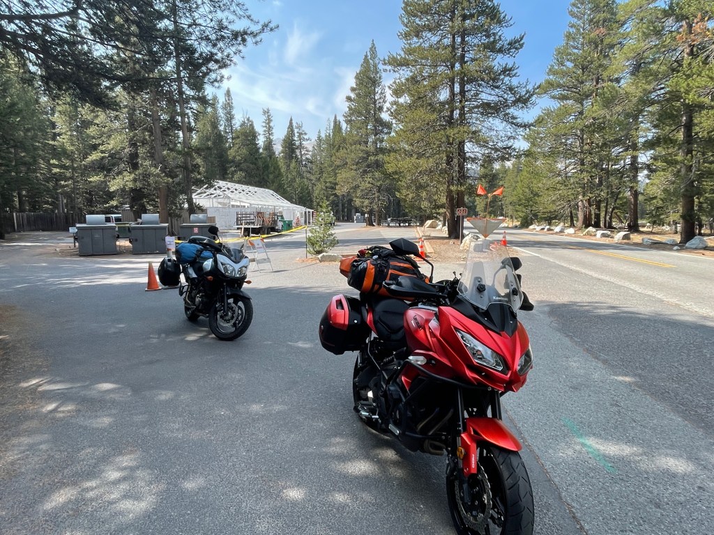 Pete and I met on Sunday morning, September 26, at our usual meeting place, the Chevron station on the corner of Yosemite Ave. and “G” Street in Merced. Our route was to take back roads to CA-120 crossing the Sierra over Tioga Pass on to Tonopah, NV. Road repairs and the closure of any services minimized the crowds one might expect to find at the end of the summer in Tuolumne Meadows. Though not evident in the photo, the air was less than pristine with smoke from the Caldor and KNP Complex fires casting a pall over the foothills up to and over Tioga Pass. In fact landscapes of our entire ride east of the Sierra, nearly all the way into Utah, were obscured by smoke.