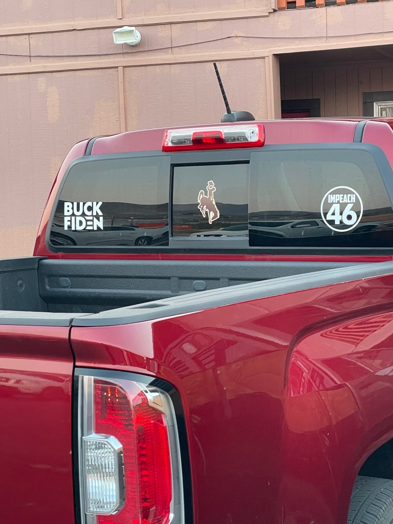 After a brief stop for a cool beverage, we stretched abit walking about the premises of the Little A’Li’Inn and noticed a message taped to the passenger window of a delivery truck.