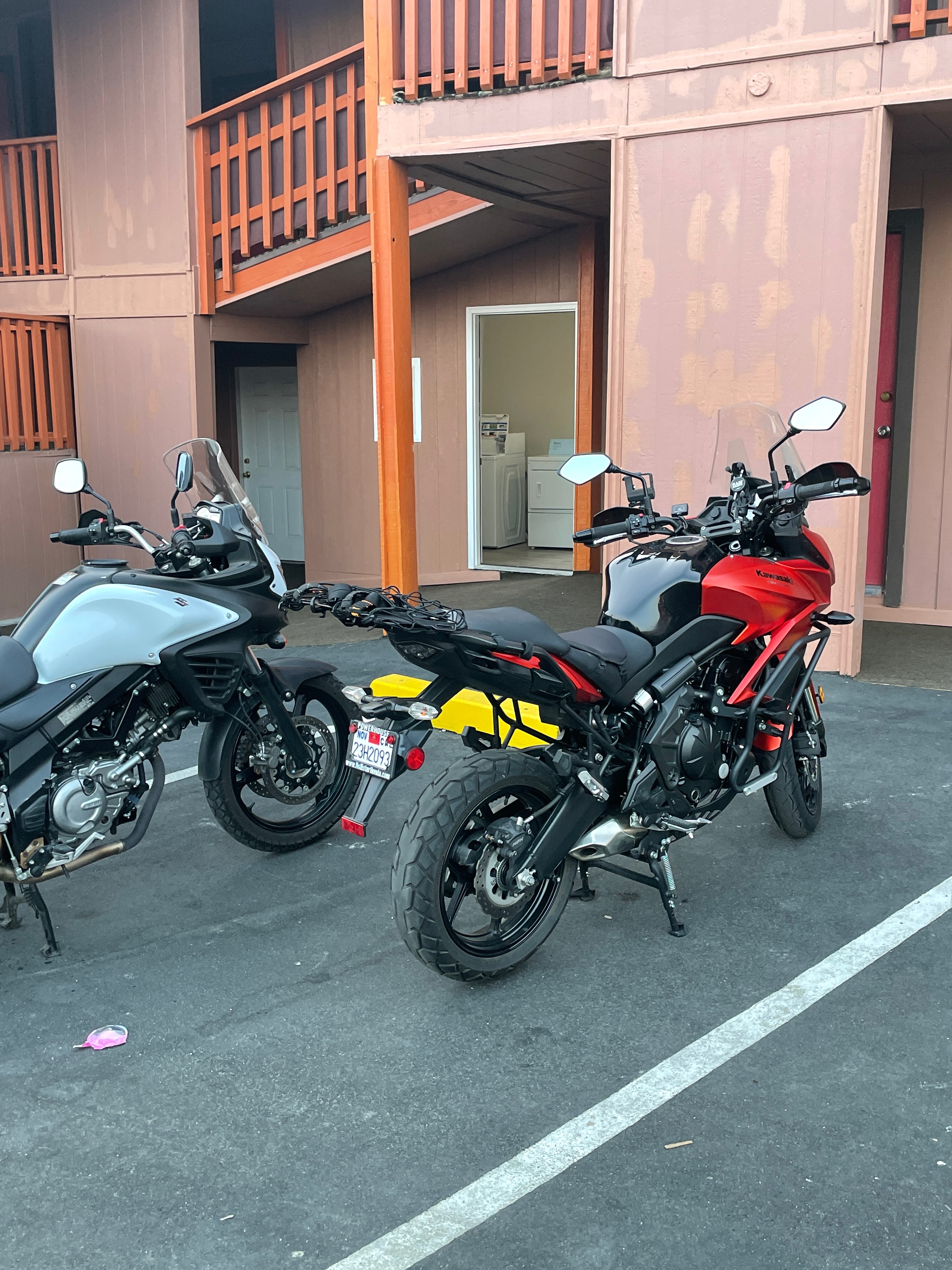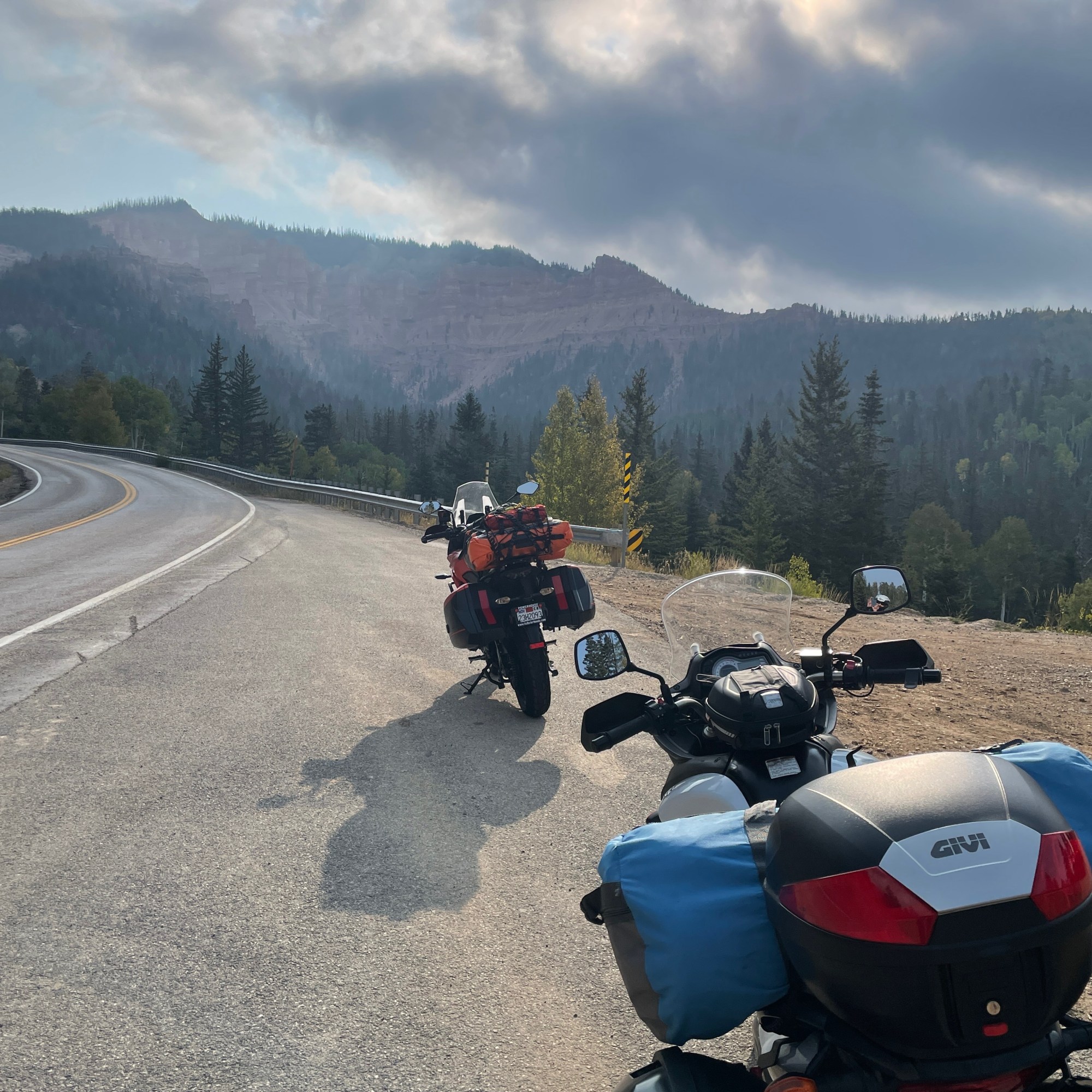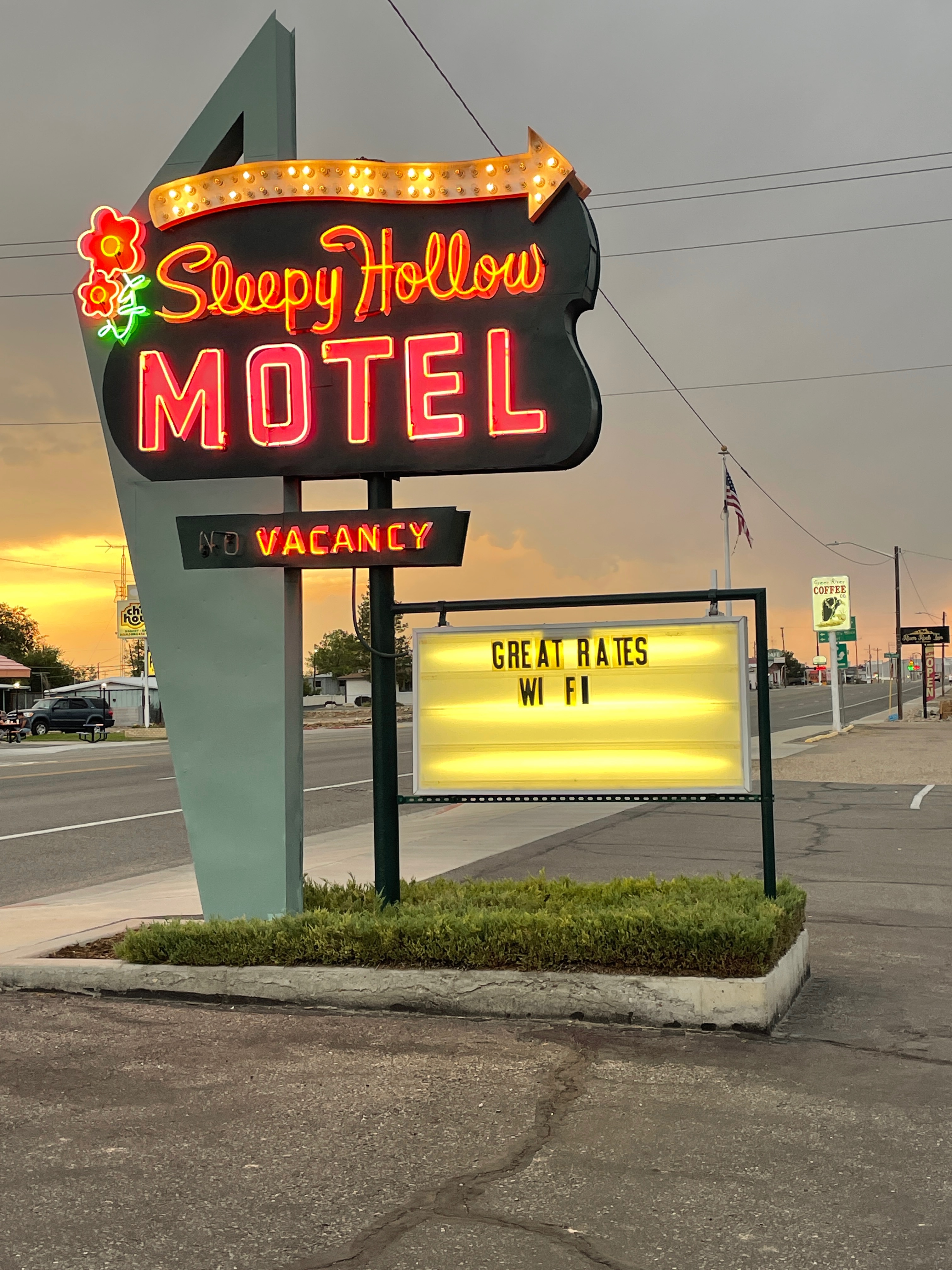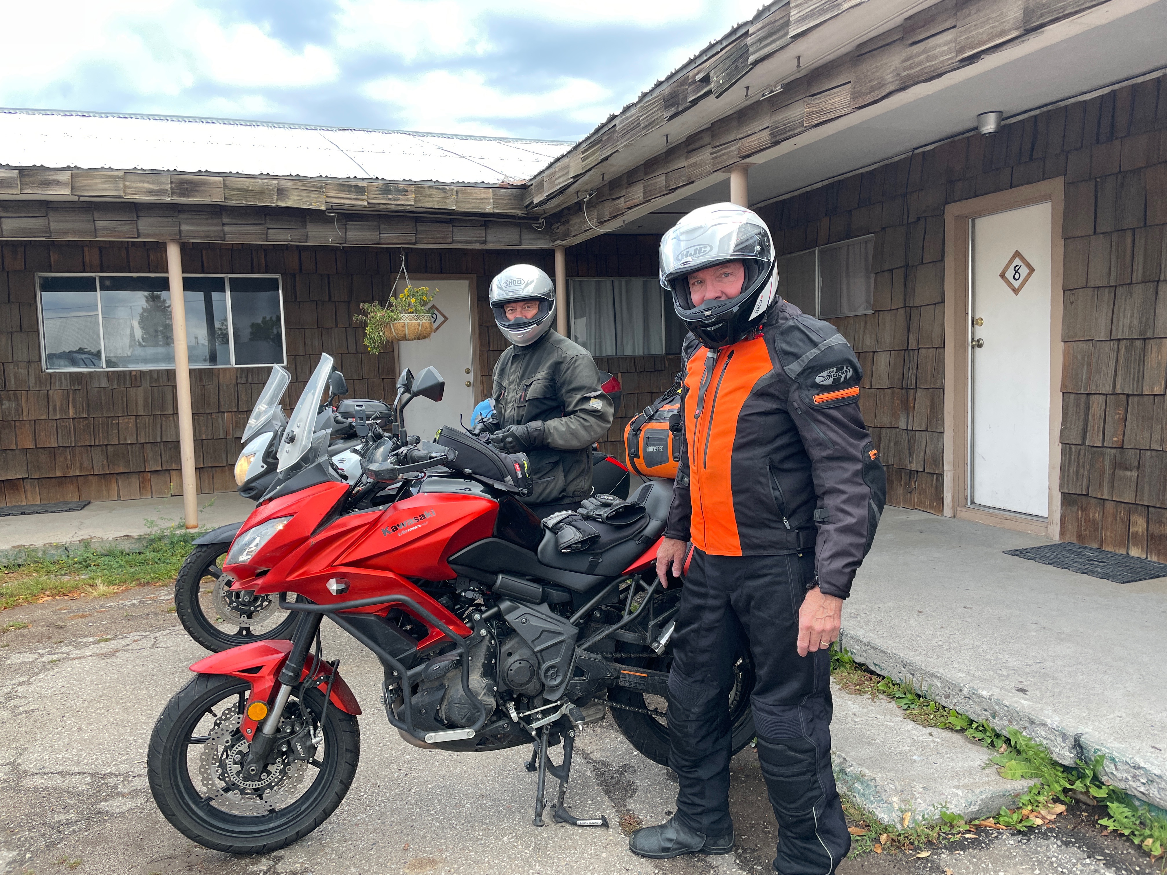 After Ray’s we procured Utah’s very own, Uinta Golden Spike for the relaxation, rehydration, and reflection hour that would soon take place on the stoop of our room as once again, clouds gathered and raindrops began to fall. Pete reflected on staying at the very same motel some two decades earlier. Interestingly, the housekeeper who we met the following morning at the Sleepy Hollow was the very same woman who worked there when Pete, two decades earlier, awakened to a dead battery on his Kawasaki Z900. Pete recalled that her husband assisted him in jumpstarting the bike. A battery failure doesn’t qualify as an “unreliability”.