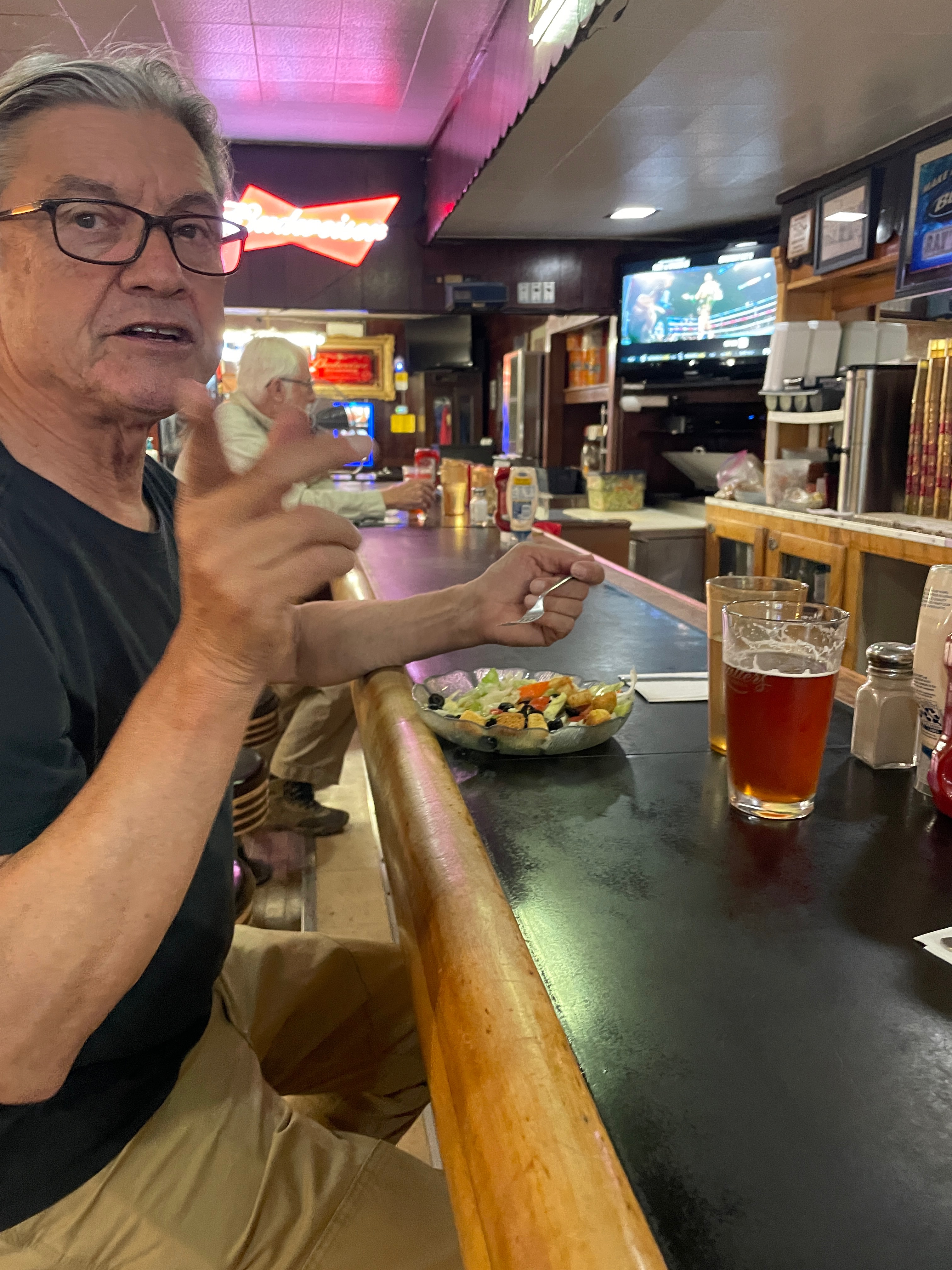 Choosing to avoid the busy highway back to our hotel, we delighted in the few raindrops preceding what the radar was showing as gully washer heading our way. Strolling through the Southern Utah University campus reminded me of my carefree youthful days at my alma mater in Chico, only now as a carefree retired geezer. By the time we arrived at our hotel, the dumpster fire had been extinguished. The evening thundershower was gathering and beginning to resound. As the relaxation, rehydration and reflection hour arrived, our nightcaps left us feeling confident that we were not about to go out in that weather to start a riot.