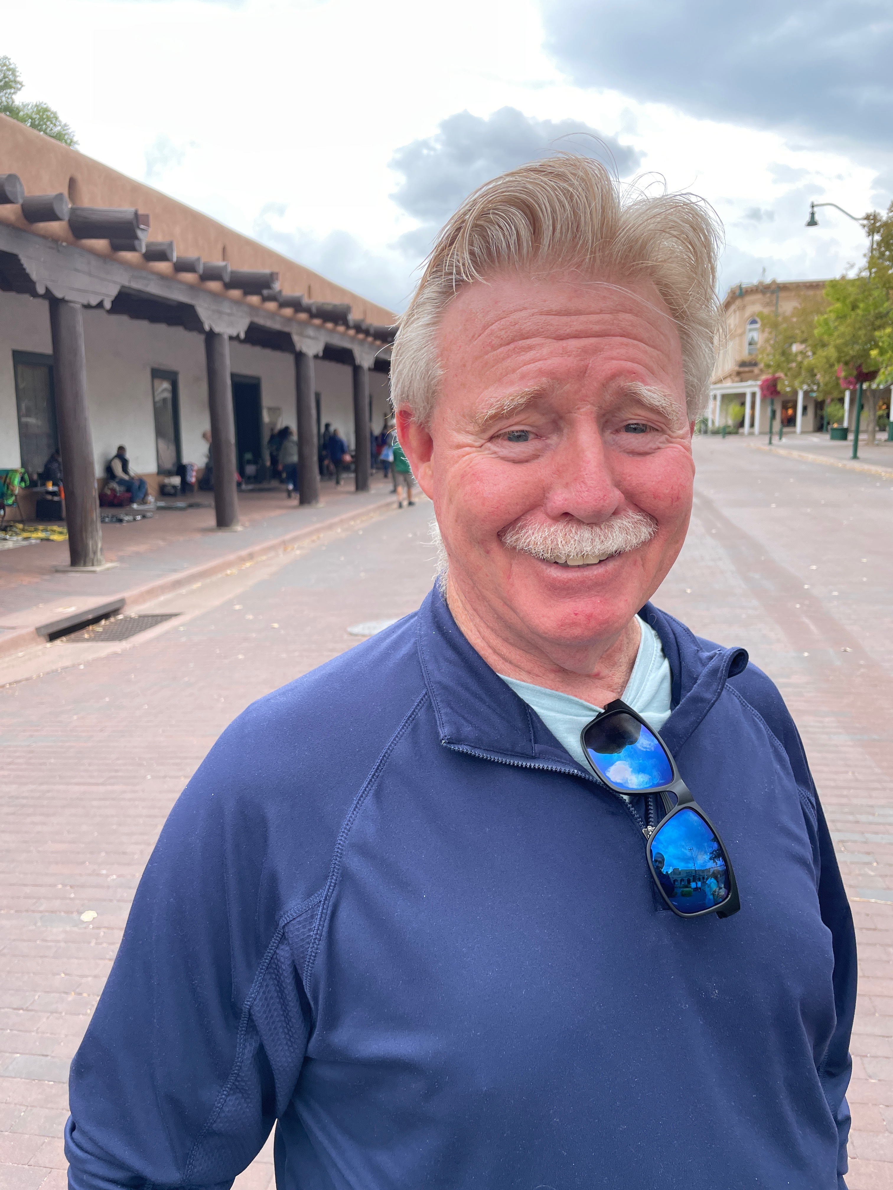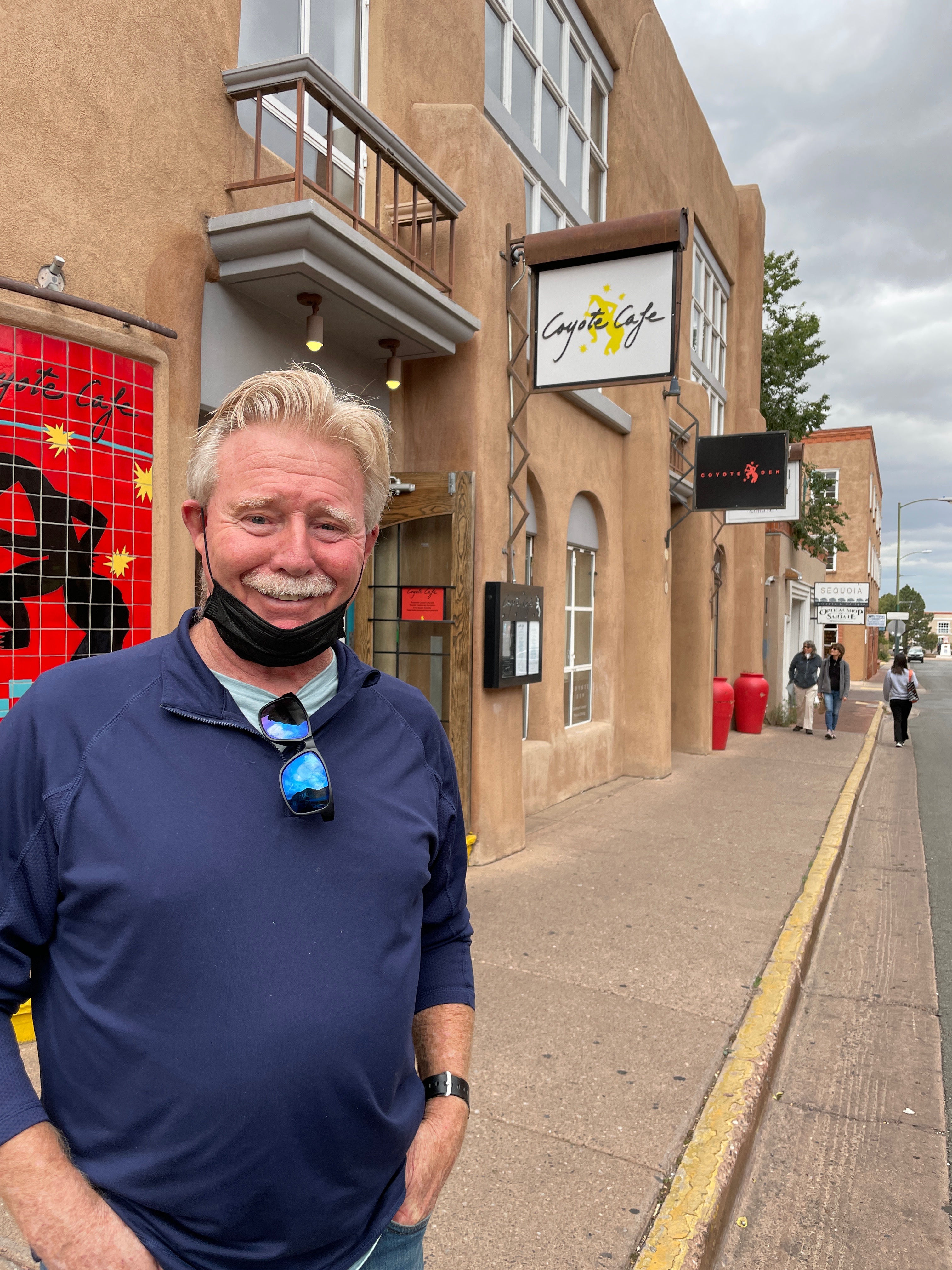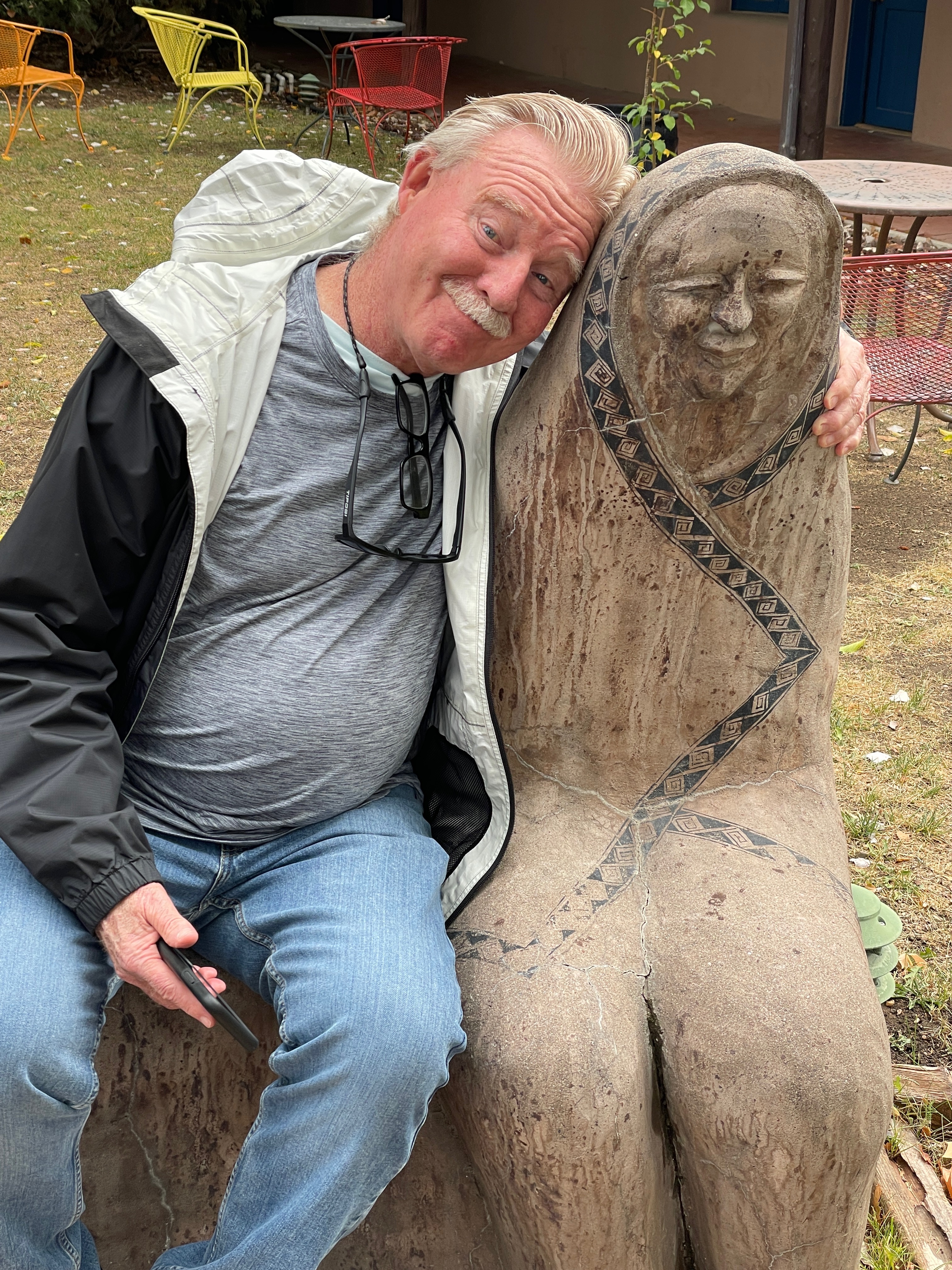 We wasted not a minute before launching into Bob’s personal tour of his new hometown. Well, reclaimed hometown. His lovely wife Suzanne is a native New Mexican (Albuquerque) and both she and Bob attended the University of New Mexico. After a wonderful career in education in California and a brief “retirement” in Ballard, WA, they’ve settled into the ristra lifestyle in a beautiful setting in enchanting Santa Fe. A quick romp around the plaza found us enjoying an early, albeit brief, relaxation, rest, and reflection half-hour warmup as I reflected on the public statuary saluting my ACD SoBe.