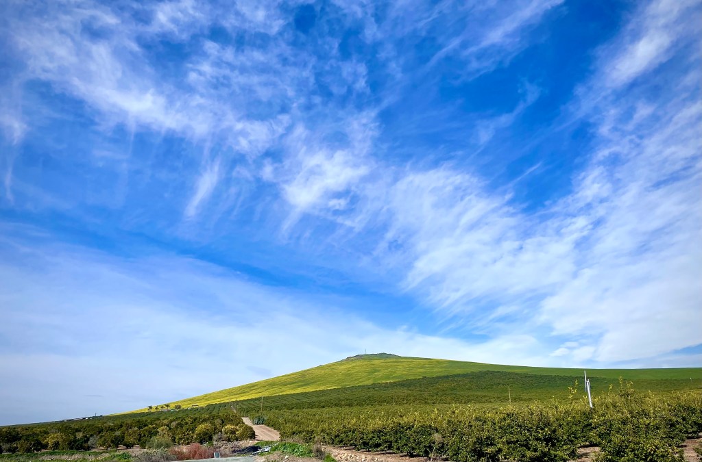 You be the judge… The final leg of our Pilgrimage was approximately 190 miles over a variety of terrain beginning with the winding Sierra foothill roads, CA-198 and CA-216, to reach the straight and narrow roads, CA-245 and CA-201, of the San Joaquin plain. We traveled across the valley floor through the small unincorporated towns of Woodlake and Elderwood, Seville and Yettem, Calgro and Oriosi all breaking up the monotony of thousands of acres of orchards all aglow with lemons, oranges, tangerines, and grapefruits hanging heavily on the verdant foliage of late winter citrus trees nearing harvest.