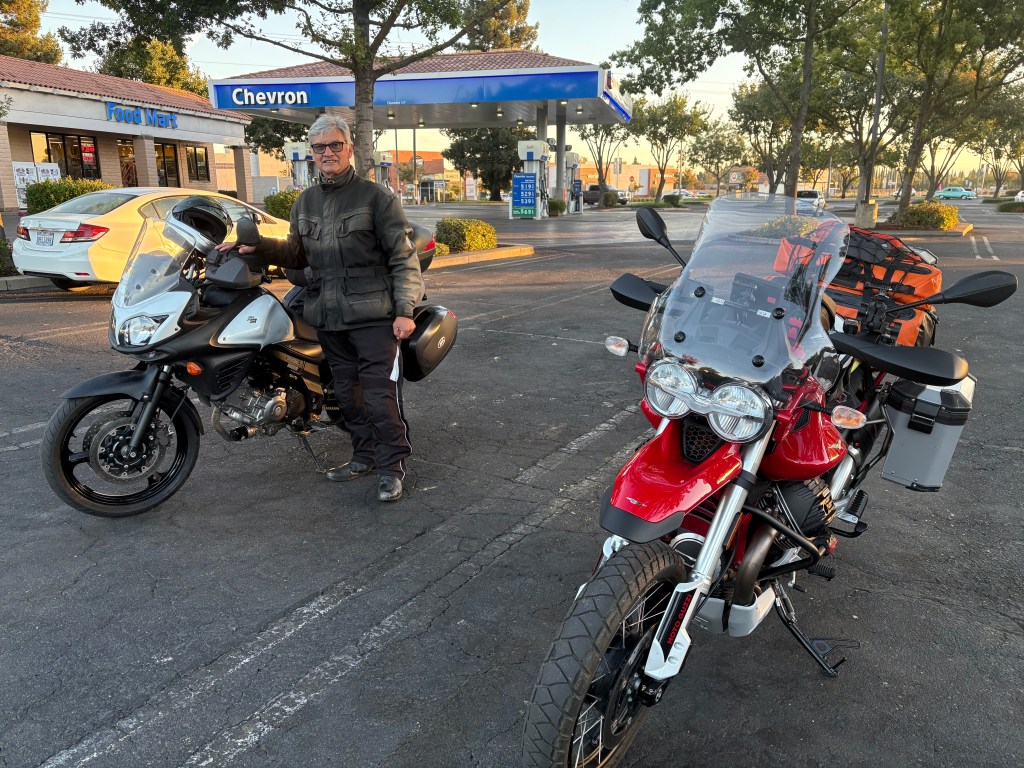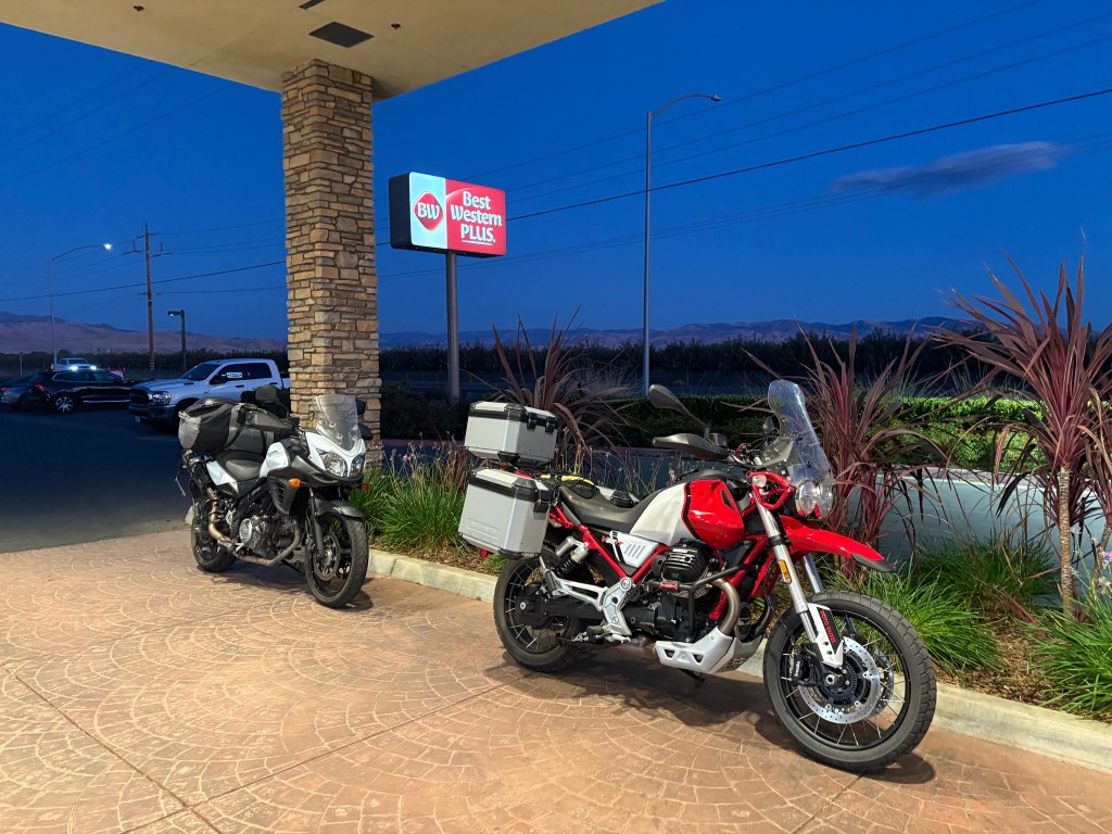 I was in the lead and when we arrived in Lake Isabella where a right turn onto CA-155 would have taken us to Kernville. The wind, menacing dark skies, and light precip compelled me to forge ahead our next stop, Hart Lake, just north of Bakersfield to fuel up and make a plan for the night. We had made 276 miles and the afternoon shadows were lengthening. Our three options were to slab back to Merced on CA-99, the Bloody Highway, to zig and zag through the foothills ensuring a well after dark arrival home with the specter of a collision with Bambi, or shoot across the Tulare Lake basin to Coaling to stay at the Best Western Plus, where we stayed on the infamous, A Moment’s Inattention ramble.