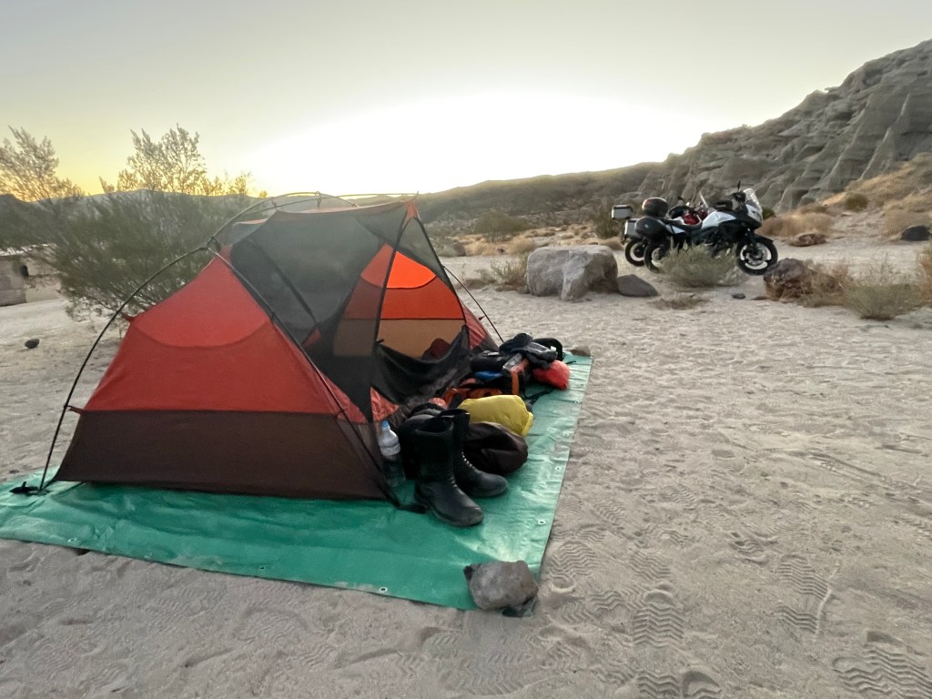 After getting camp established, Pete and I headed into town for provisions and refreshments, returning to enjoy a pleasant evening under the stars, transfixed by a crackling campfire as we relaxed, rehydrated, and reflected on the day’s journey.