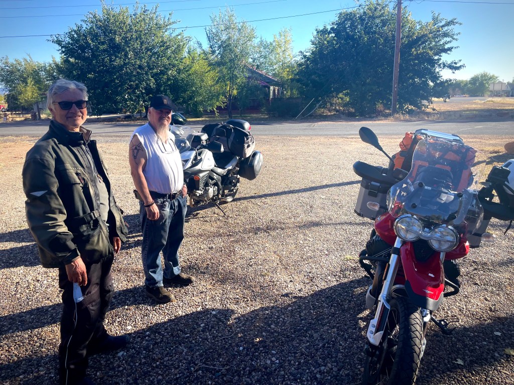 With the day’s riding behind us, we rolled into Camp Verde, ready to unwind and recharge for the next leg of our adventure. Our first stop was to scout the USFS Clear Creek Campground – a grassy, flat site with shade provided by tall cottonwoods. Perfect. Despite the slightly creepy gravel road leading in, our gracious campground host recommended we set up right across from his site, next to the clear creek for which the campground was named.