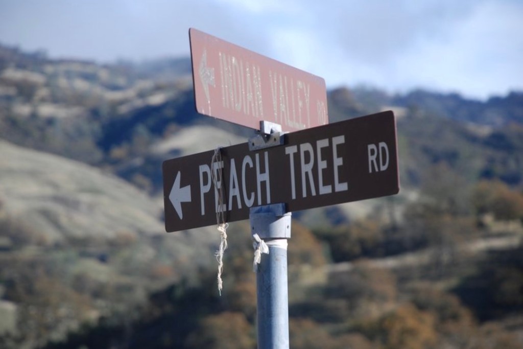 Indian Valley Rd intersects Peach Tree Road and at Bitterwater joins CA-25 all adjacent to the San Andreas Fault.