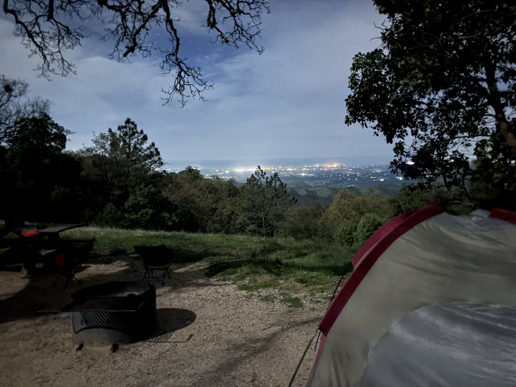 When I noted that we had reserved the space, the multi-generational family hesitated, claiming that there was no reserved tag on the site kiosk. About that time a California State Parks pickup came down the road from the sites above where an employee stepped out of the vehicle and clipped a tag with, “Reserved: Jones.” The family accommodatingly begin moving their gear to an adjacent site. Territorial dispute resolved, we set up camp and enjoyed our sami and burrito with a spectacular view of Monterey Bay.