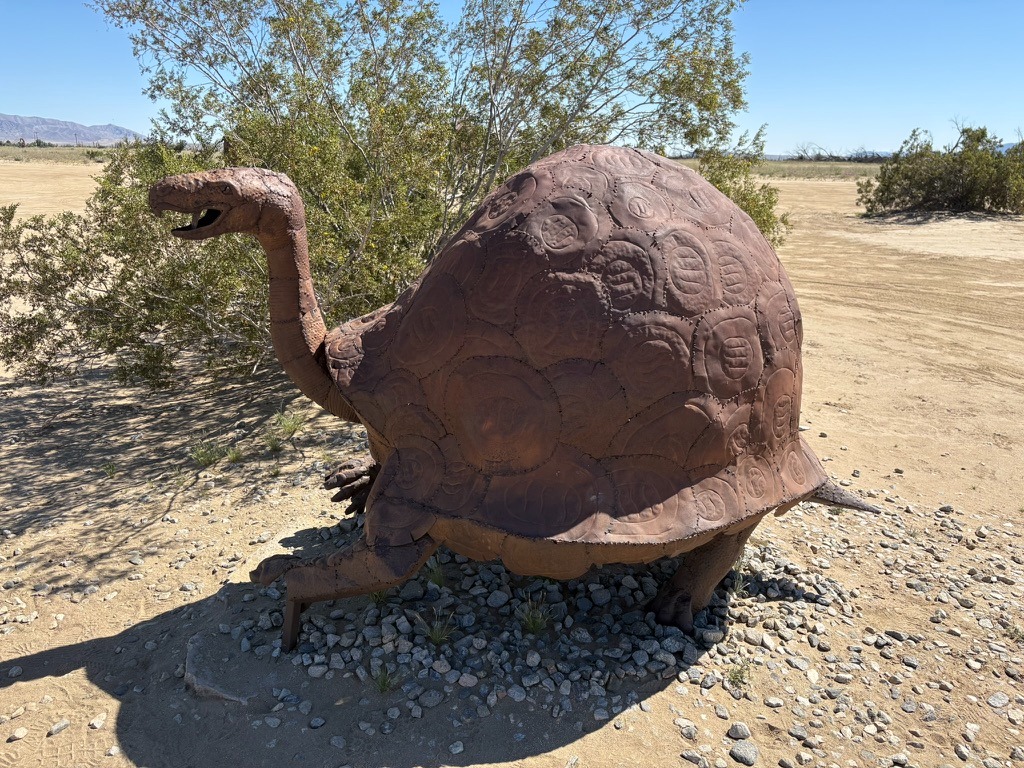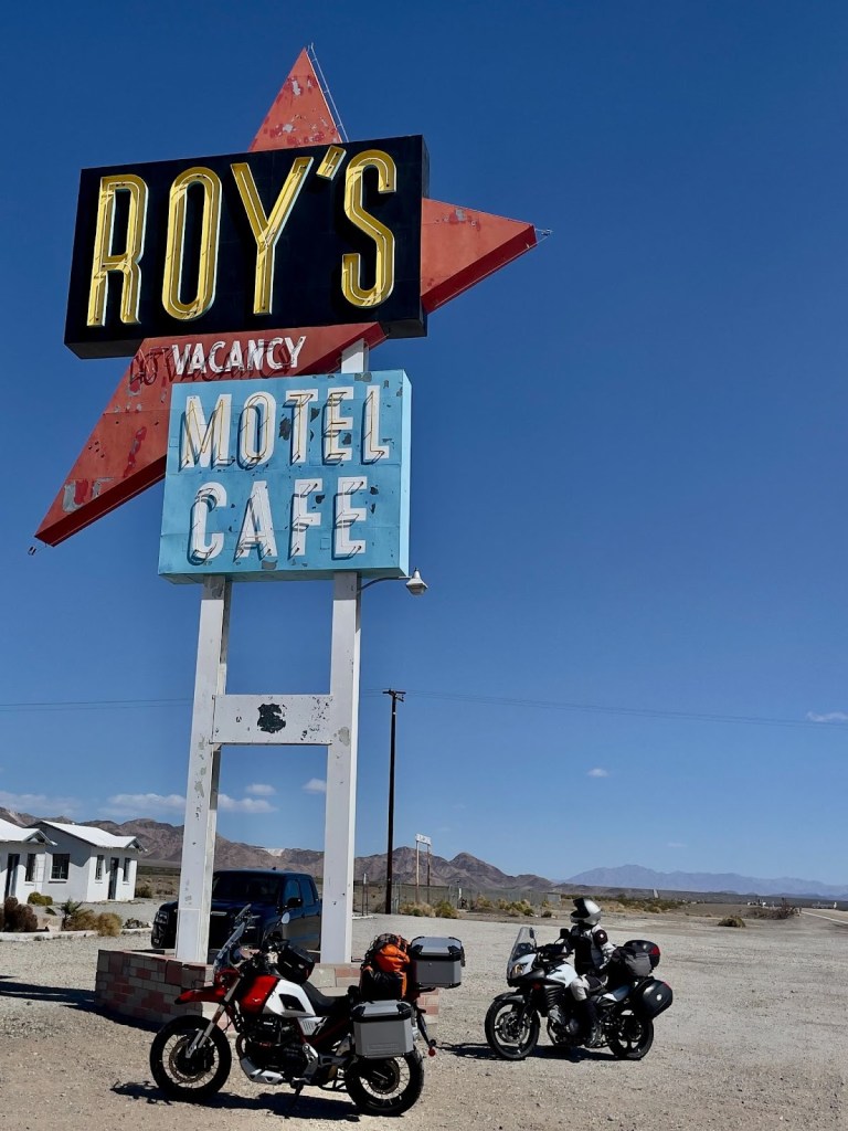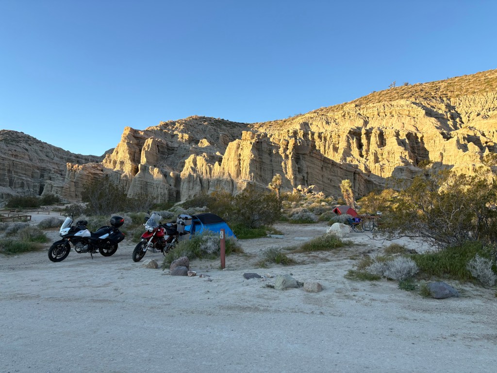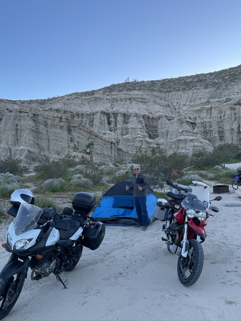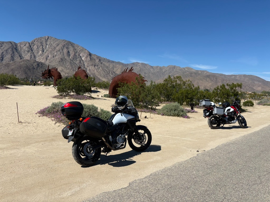 Pete (Sisyphus’s moto-associate, henceforth labeled as SMAP) and I enjoy the routine experiences like Mexican food and campgrounds on a ramble and the unique experiences like Box Canyon in 35 mph winds or meeting a fellow Guzzi rider (I’ve only met two since 2023 when I acquired IlBellaosa). Assured of the usual Mexican restaurants along the way, it is California afterall, where had we never been before and will there be another Guzzi out there, somewhere?