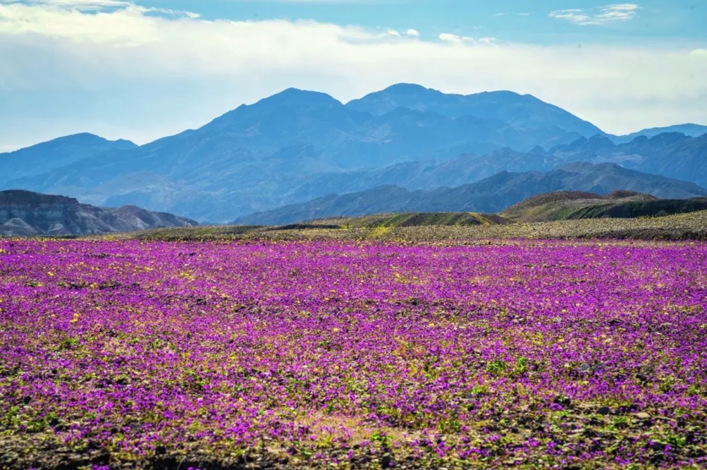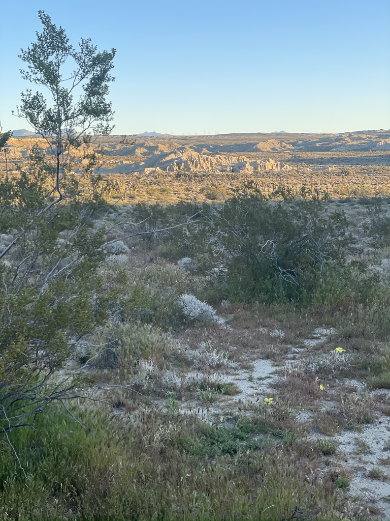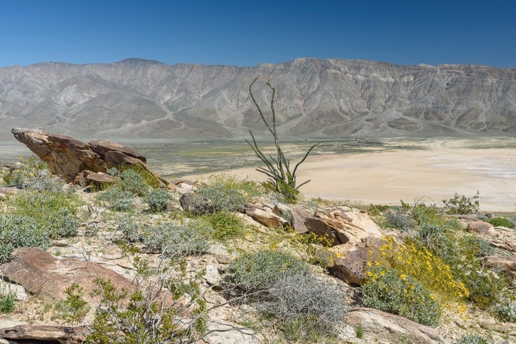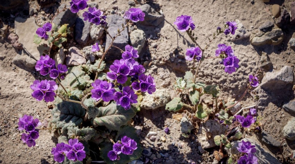 As the title implies, part of our quest was to see this alleged, ‘super bloom’ that was shaping up across California.  Having made our way to the Carrizo Plain and Antelope Valley, two of California’s most prolific wildflower shows on past rambles, it was time to explore the Anza-Borrego desert bloom while tacking on a loop through Death Valley to witness the alluvial fans around Furnace Creek covered by the ephemeral burst of Desert Gold (yellow blooms) and Phacelia (purple blooms).  I had to hit up my 2016 post, fresh out of the Naturalist training, to remember the names of flowers by which the San Francisco Chronicle was seducing its readers in publishing photos of the current super bloom…