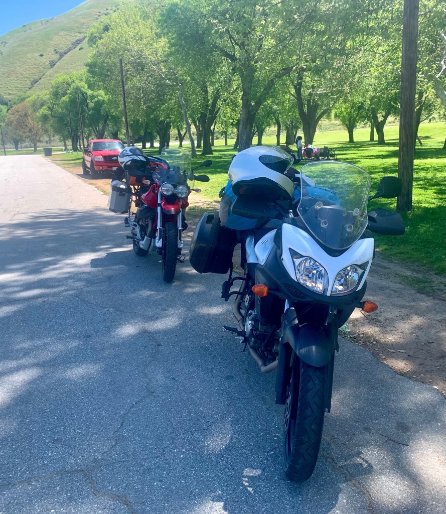Bright and early on March 2nd we convened at our usual ramble departure venue, the Chevron Station at Yosemite Ave and G St.  I was on IlBellaRosa, my 2022 Moto Guzzi V85TT and SMAP was on his unnamed 2014 Suzuki V-Strom.  That’s a clear insight into our personalities.  Sisyphus is self-consciously flashy, giving his moto an Italian sobriquet, and SMAP is decidedly not on his anonymous Japanese whip.