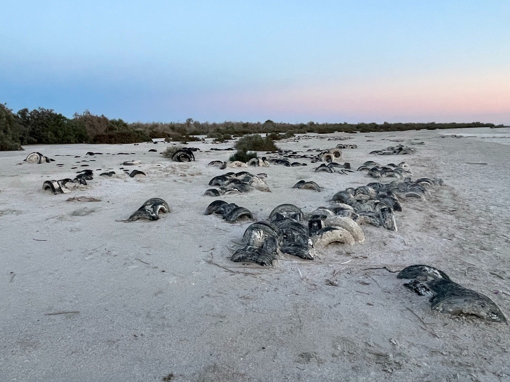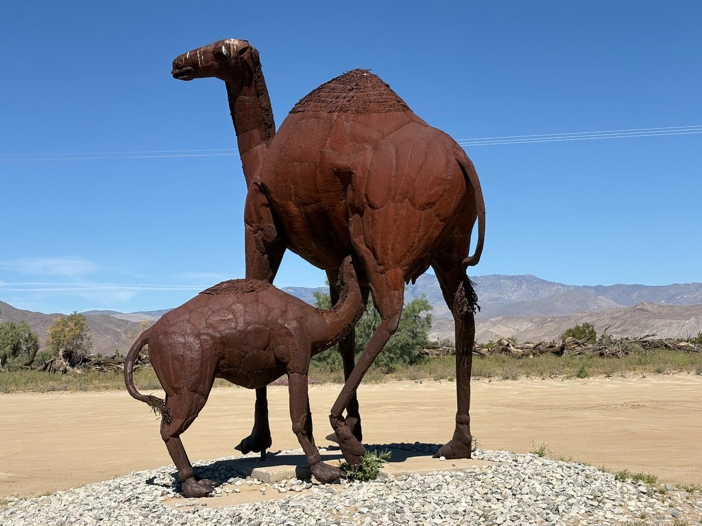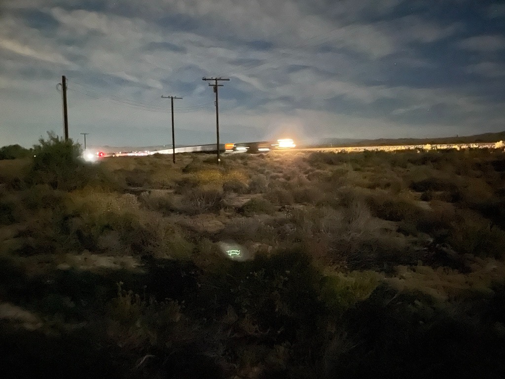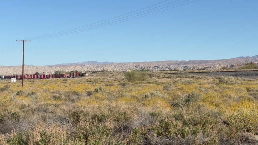 On March 19, approximately 20 Union Pacific railcars carrying 40 containers jumped the tracks near Parkside Drive and Highway 111 in the Mecca-North Shore area of the Salton Sea.  The location of the derailment was virtually across from the entrance to where we pitched our tents at the New Camp Campground about a quarter mile away.  Trains would lay on their horns approaching the Parkside Dr. intersection throughout our stay.  So much for your Prime two-day shipping…