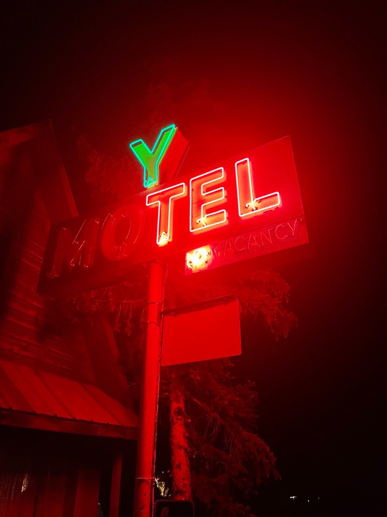 The Y Motel was a known crash site for Continental Divide Trail hikers. The gentleman above and a fellow hiker emerged from the storm-battered trail that night, claiming the last two rooms along with us.  You can read about our New Mexico ramble at 2021 Fall Moto: Abbey’s Other, On-the-Road Trip, Part 1.