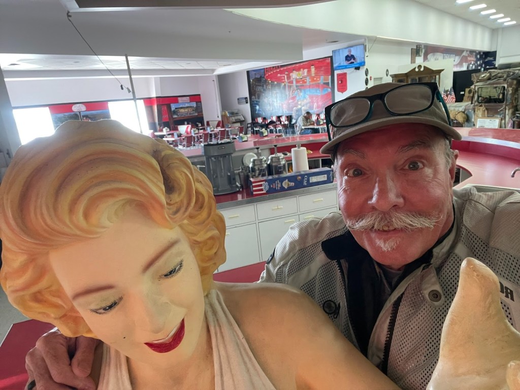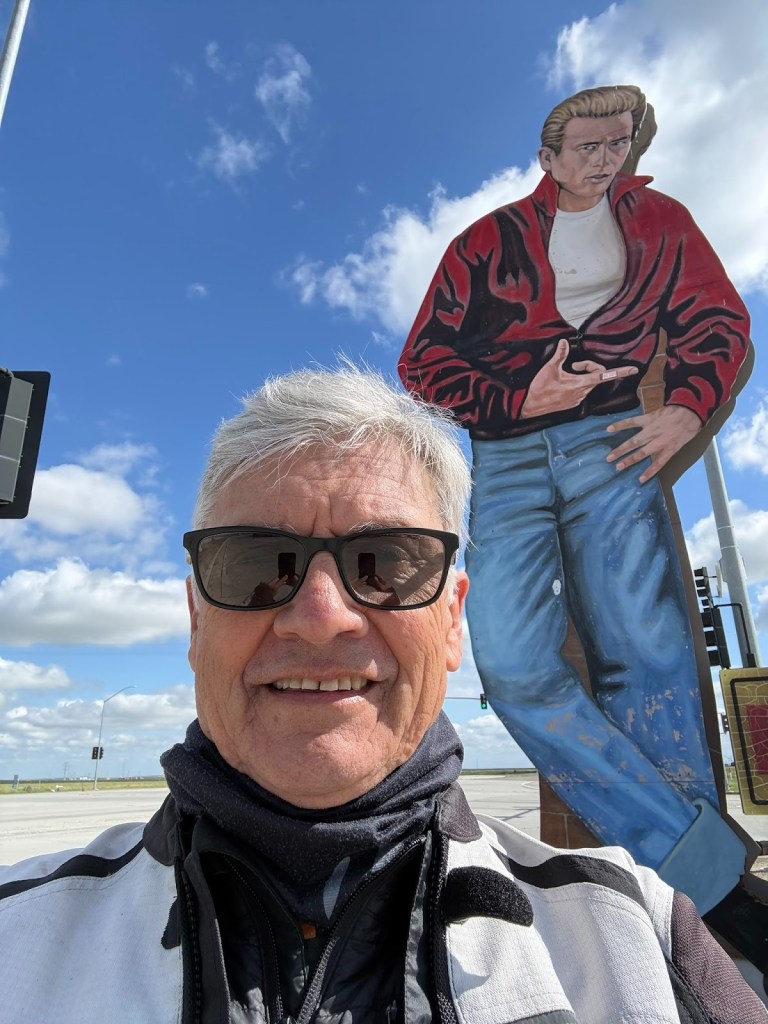 Nalgas relief and some James Dean, Marylin, and a tribute, of sorts, to the Dust Bowl at a gas stop in the Lost Hills. I’m not sure why Marylin is featured except it goes with the whole 50’s vibe of the Dean reference.  No shame.