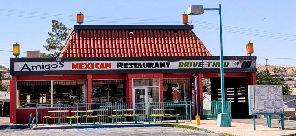 SMAP and I agree that Amigo’s is not only the first place finisher on this ramble’s SMRRI, but may well be, the highest ever gold-medal-ranking, podium-summit restaurant on the SMRRI–well, since Roberto’s in Taos closed.  A silver medal tie goes to Escobar’s Mexican Restaurant in Kanab Utah and Esparza’s in Trona.