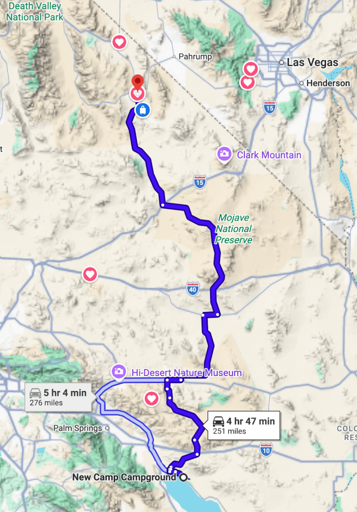 Day 5 – Shoshone via Death Valley, Panamint Springs, and Walker Pass to Kernville Itinerary