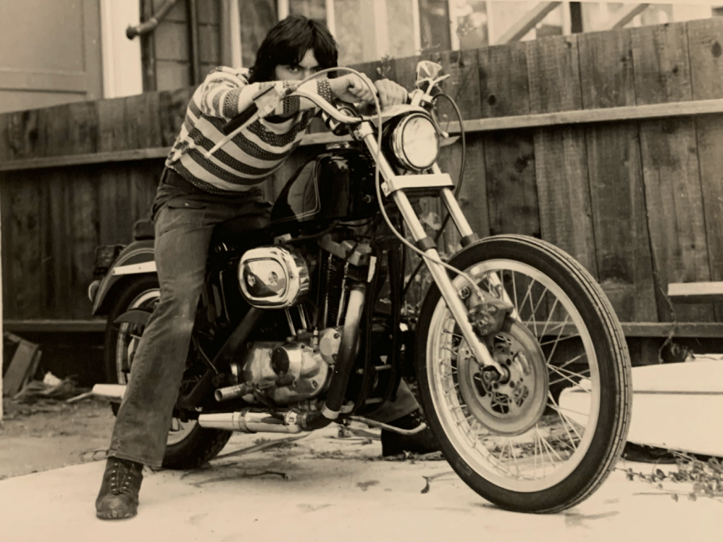 SoCal Biker Dudes, crowding around SMAP’s vintage bike photos and Moto Guzzi Bob-Phil